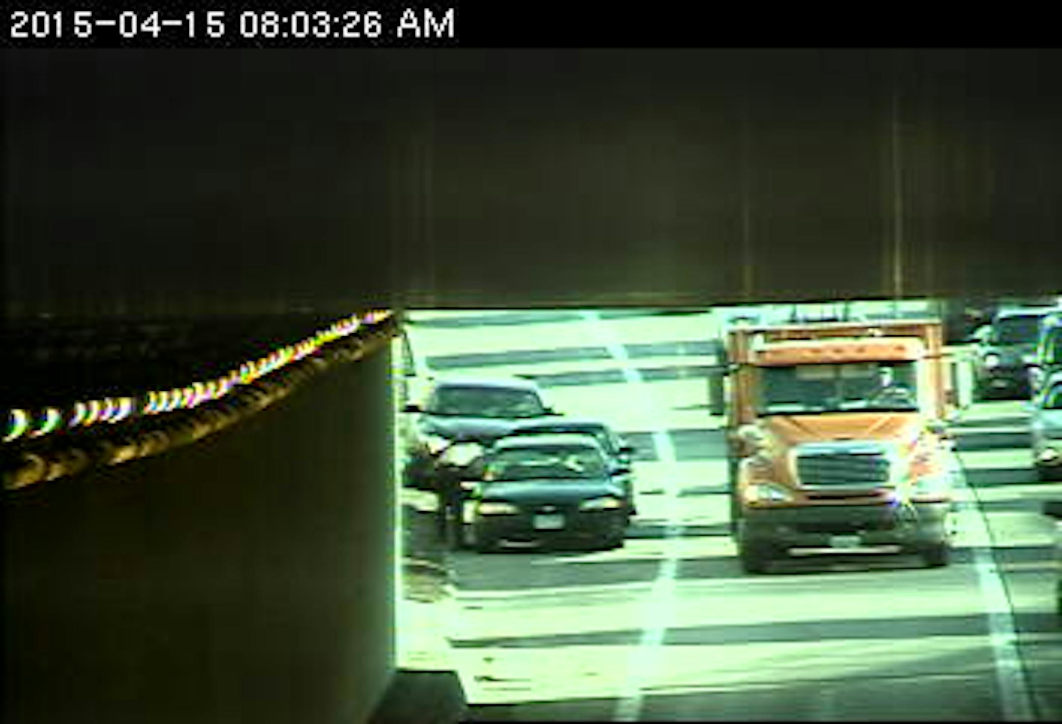 A fresh fender bender has the right shoulder of eastbound 94 blocked at the entrance to the Lowry Hill Tunnel. Traffic is already stacking up back at 7th Street.