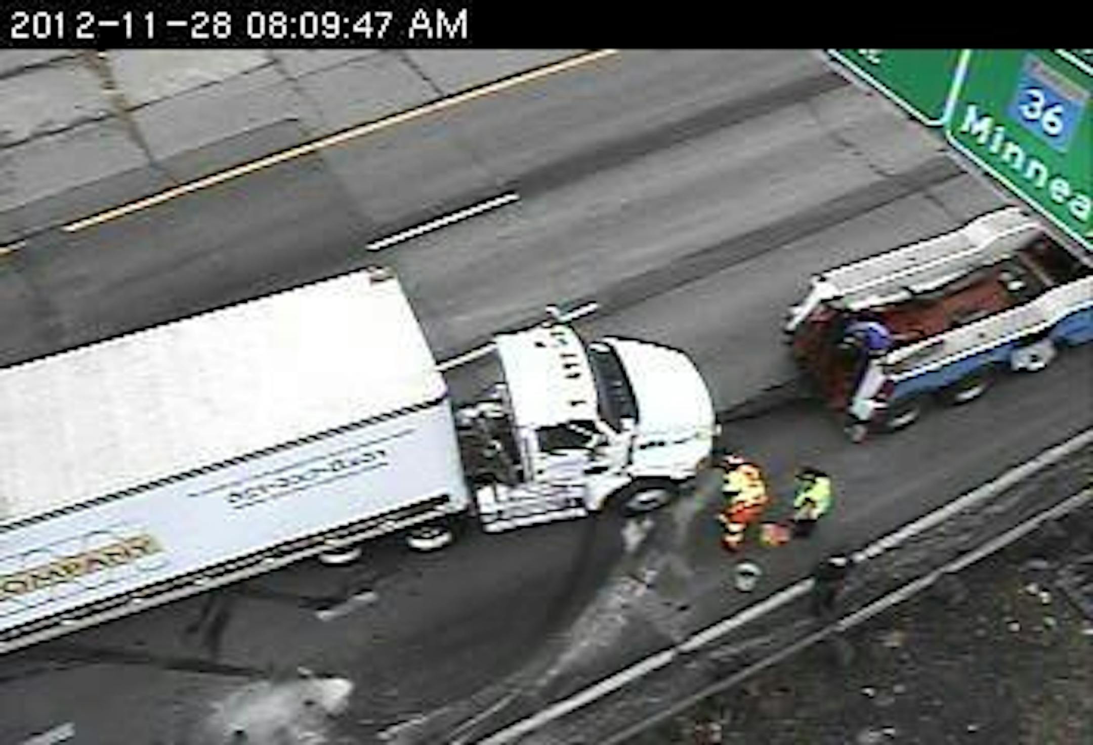 The ramp from eastbound 36 to northbound 35E remains closed. On 35E, the backup extends back to Maryland Avenue. That is taking about 20 minutes.