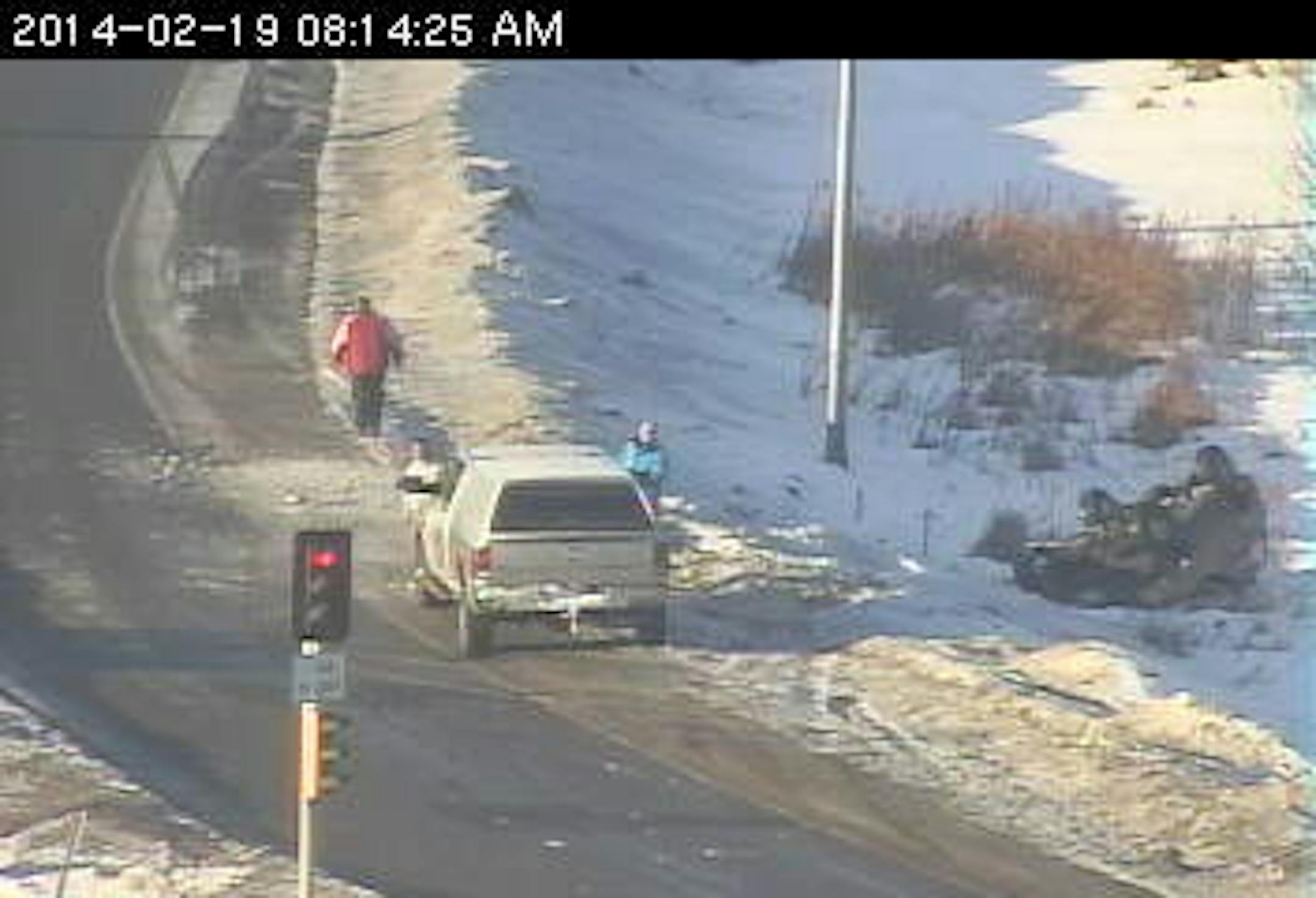 The latest rollover is on the ramp from Lexington Avenue to southbound 35W in Lino Lakes.