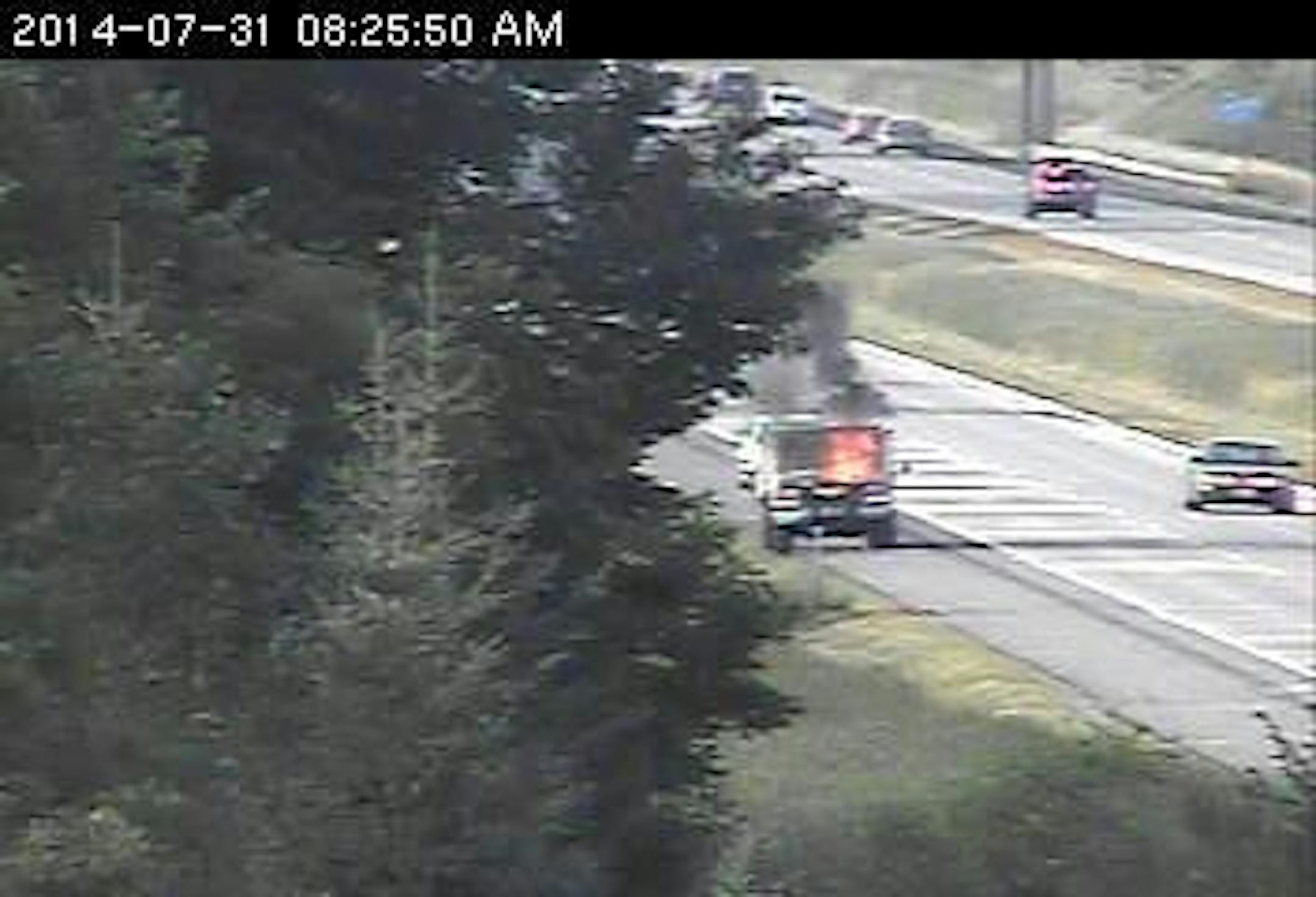 Here is a frightening sight, a truck on fire on northbound 35E at 80th Street, just south of the Forest Lake Split. The Centennial Fire Department is on the way.