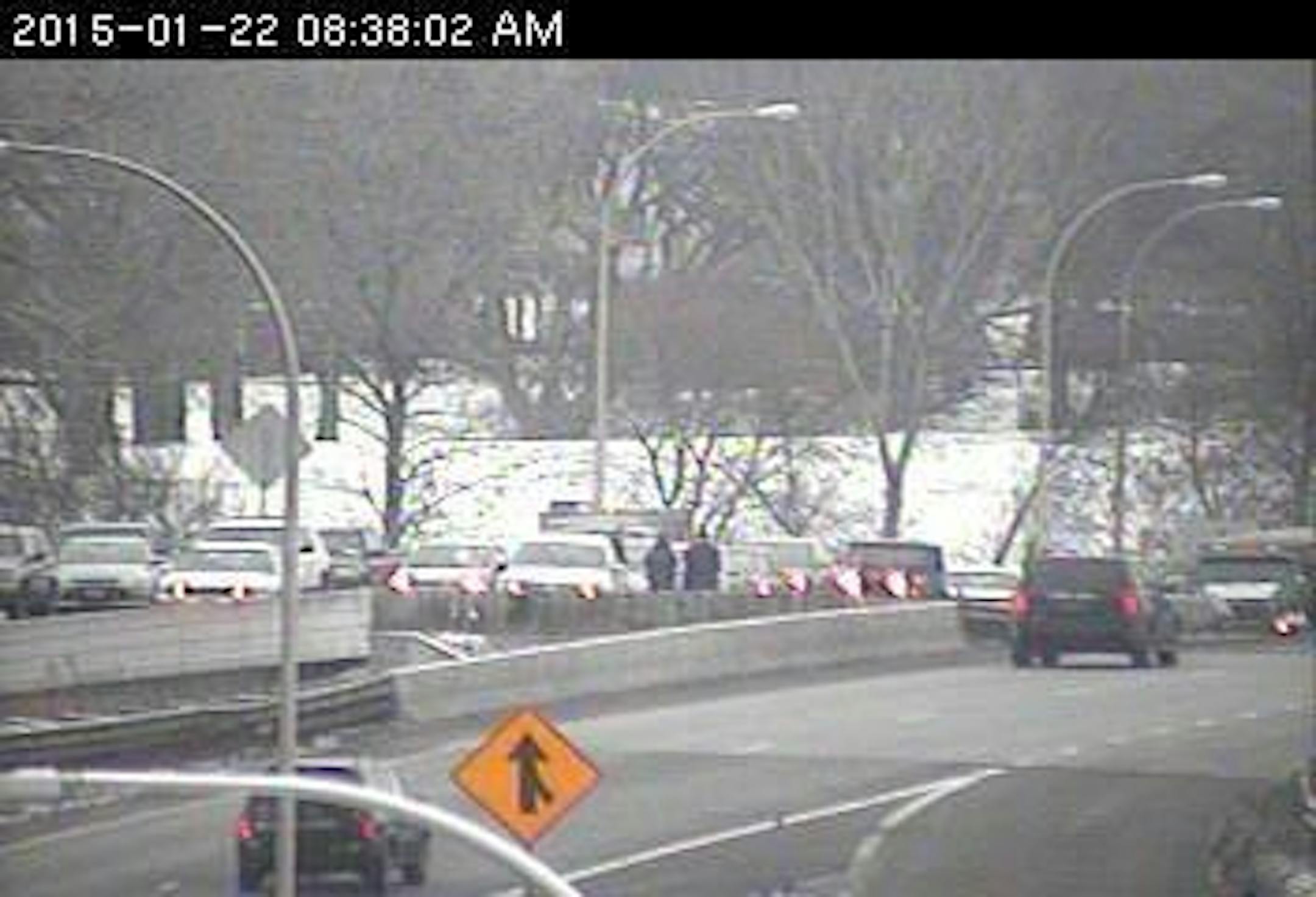 This four-car crash on westbound Crosstown on the Cedar Avenue bridge has the left lane blocked and traffic stacked up back to 24th Avenue.