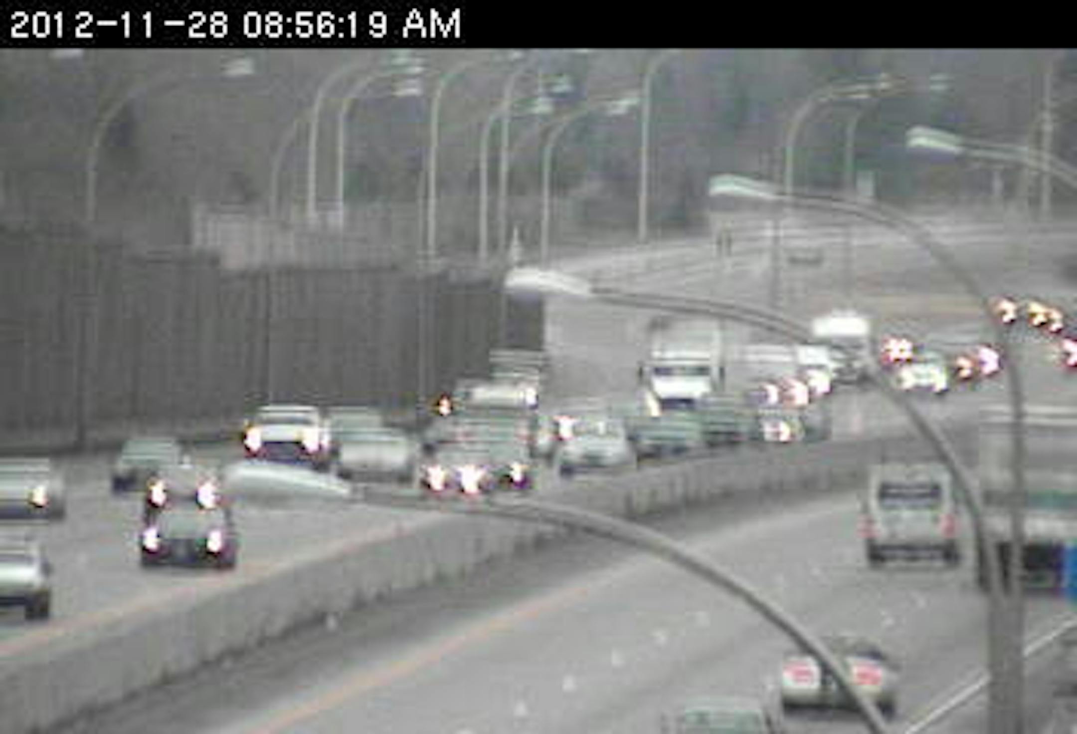 An accident is blocking the left shoulder on southbound Hwy. 100 near Duluth Street. Otherwise its all clear on mainline roads.