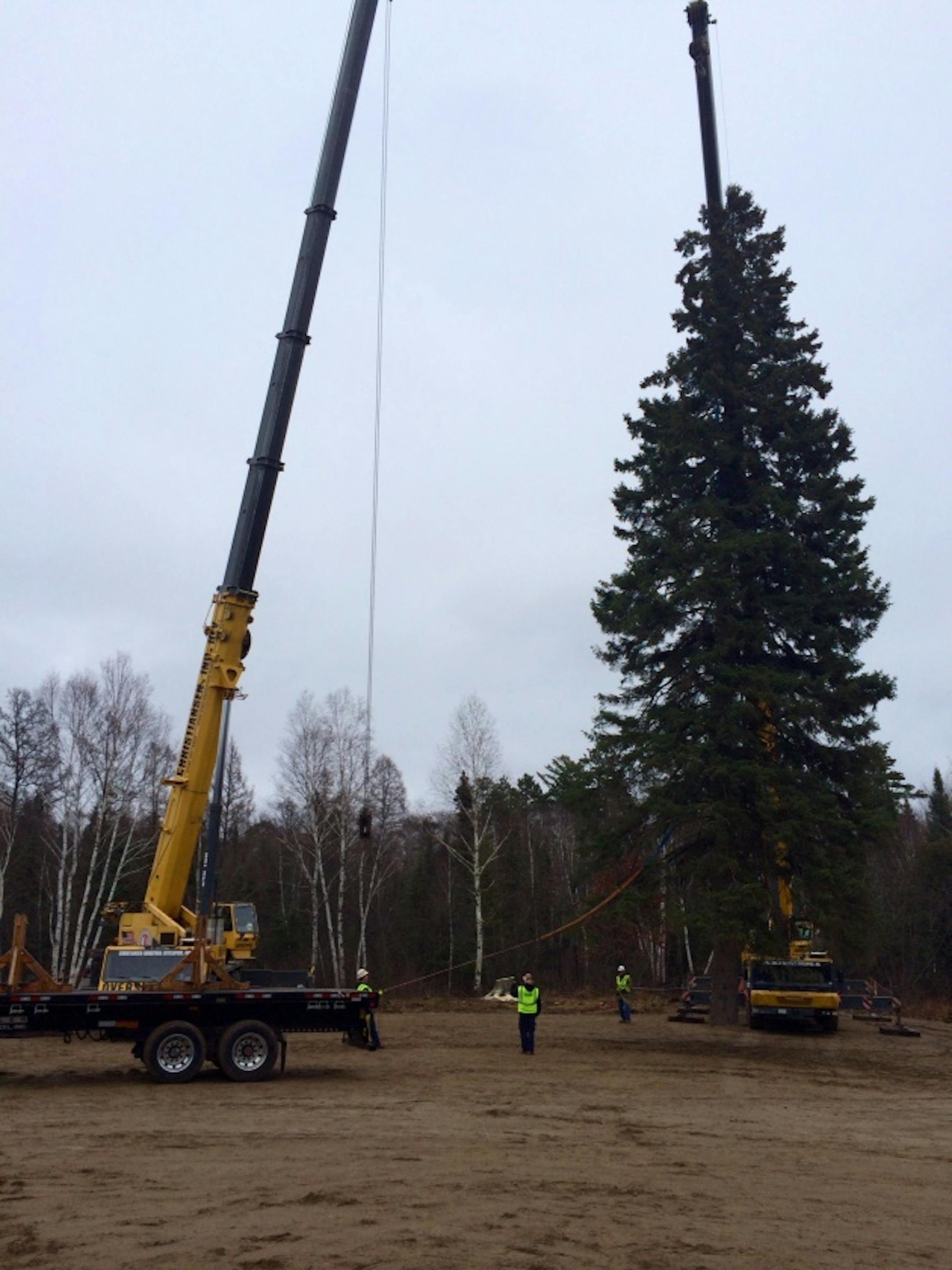 Minnesota is contributing an 88-foot towering green giant to the nation's capital for its Christmas tree. The behemoth was cut down today in Chippewa National Forest. It will be carefully placed on a Mack truck and will drink from bags of water so it doesn't get dry along the journey. Watch this space for updated photos when it is adorned in early December in the nation's capital.