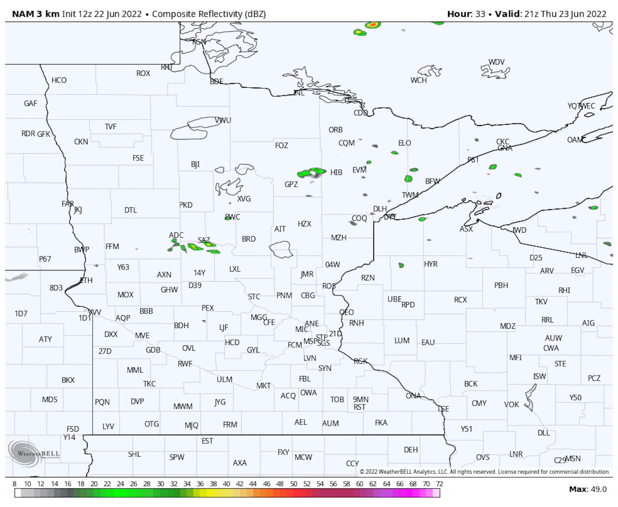 While most of Thursday will be calm across the state, we will watch the potential for multiple areas of thunderstorms to erupt near the dinner hour across central and northern Minnesota, lasting into the overnight before fizzling out by Friday morning. A few of these storms could be strong.