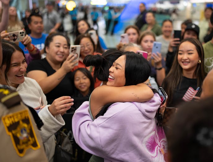 Local gymnasts, dignitaries, fans and travelers greeted Lee, who is from St. Paul, on her return from the Olympics on Sunday.