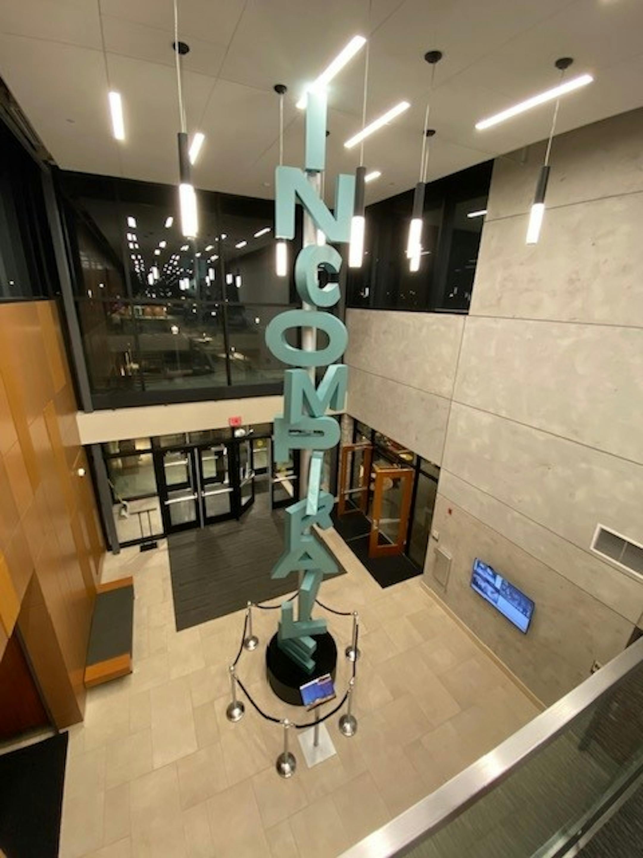 The idea for an arts program first surfaced in 2018 when the city opened its civic campus housing City Hall, police and fire, and other city services in a splashy building on the site of the former Columbia Arena. The city used some of the rebates it received from Xcel Energy to create a sculpture in the building’s atrium. The 26-foot sculpture sitting atop a large hockey puck features letters from the former ice center’s sign used to spell the word “incomparable.” It was the first effort to bring art to the city.