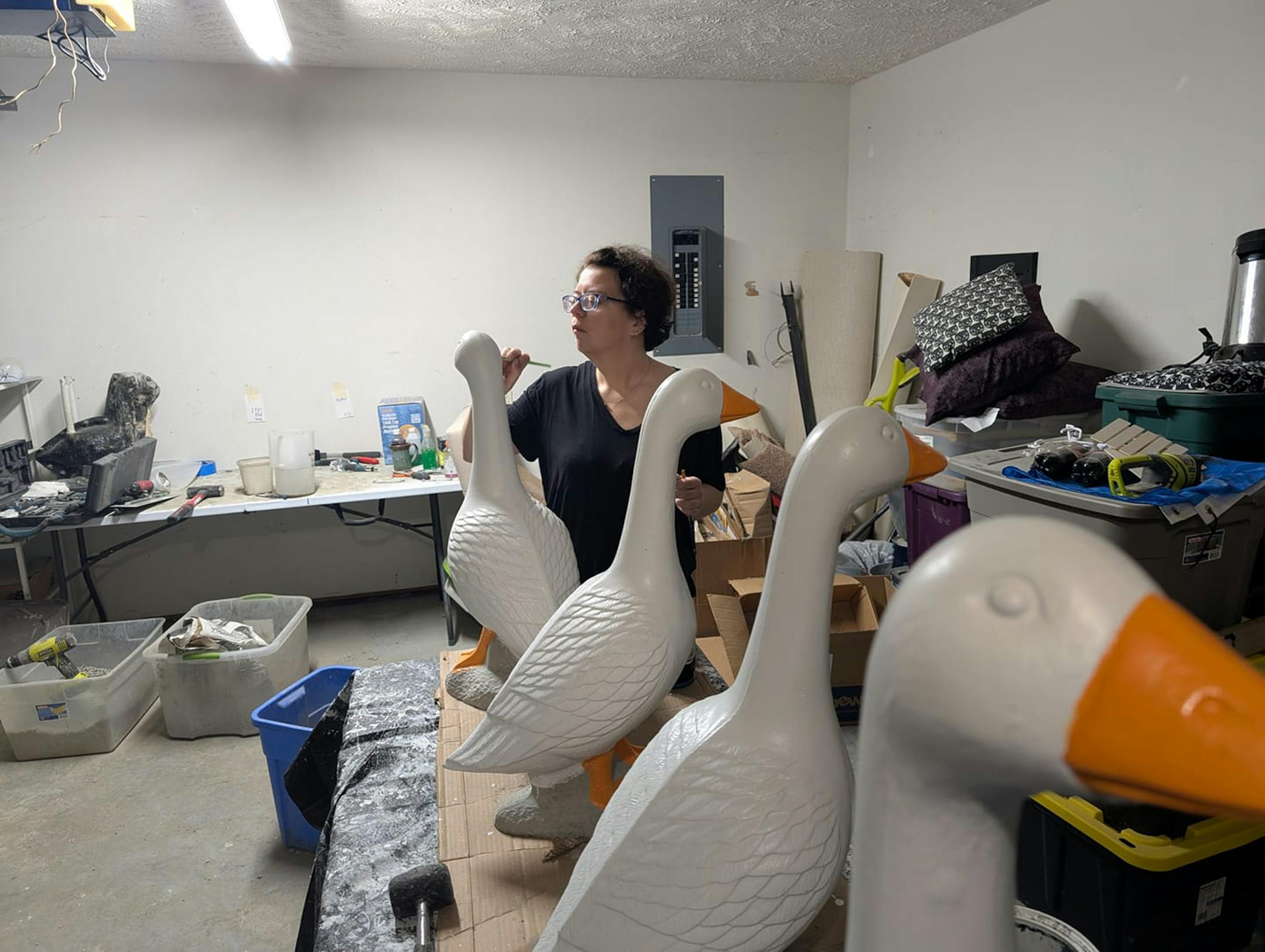 Some have inherited geese from elderly relatives, while others buy them new from local concrete artists like Priehs. A plastic blow-mold version is available from Gaggleville.