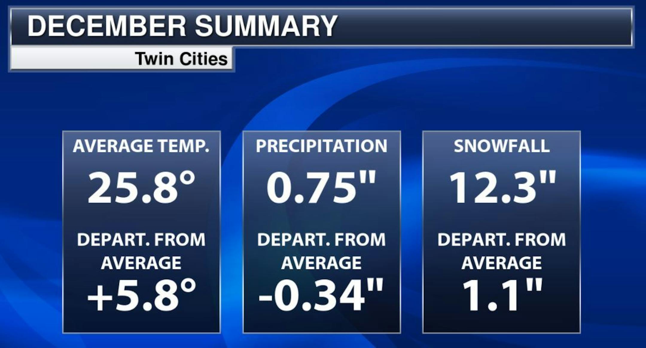 Tuesday's snowfall padded the December stats across the region. Note that the Twin Cities didn't get a ton with the system earlier this week, but there were pockets of heavier snow across parts of central and northern Minnesota, but the heaviest fell from Iowa into NW Illinois and into far southern Wisconsin. The official total at the MSP Airport was only 2.4"