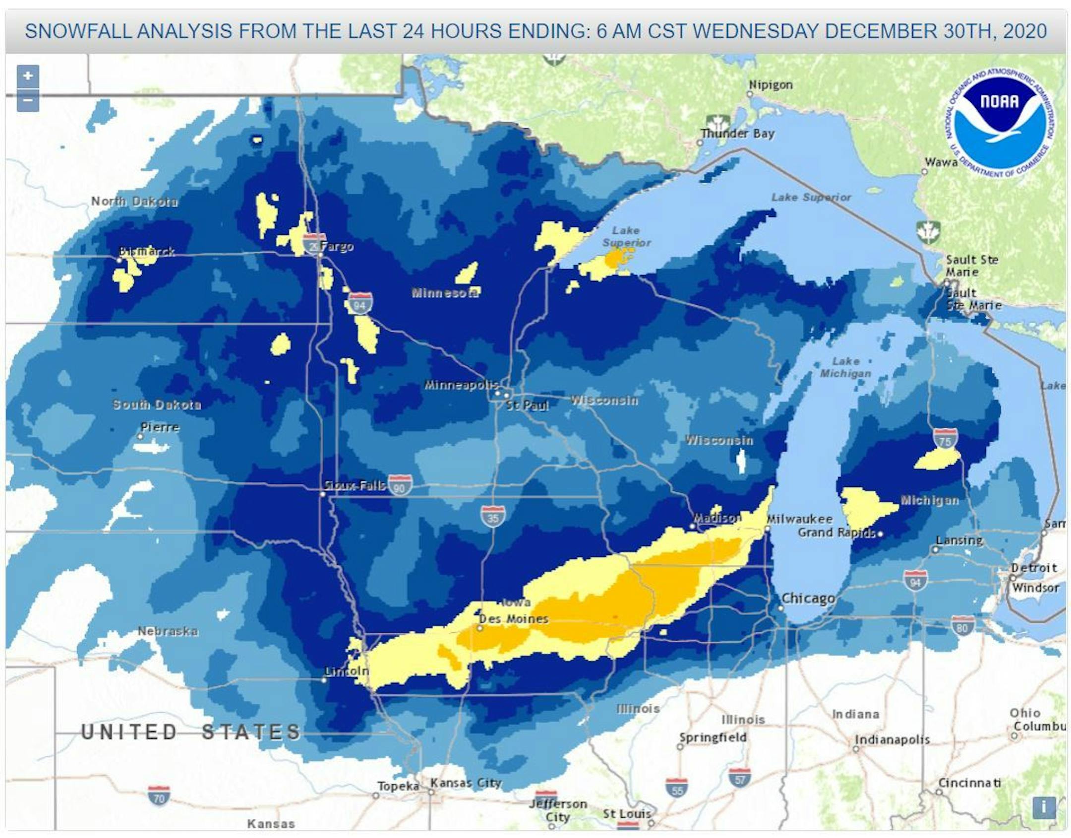 Snowfall Analysis From Tuesday, December 29th