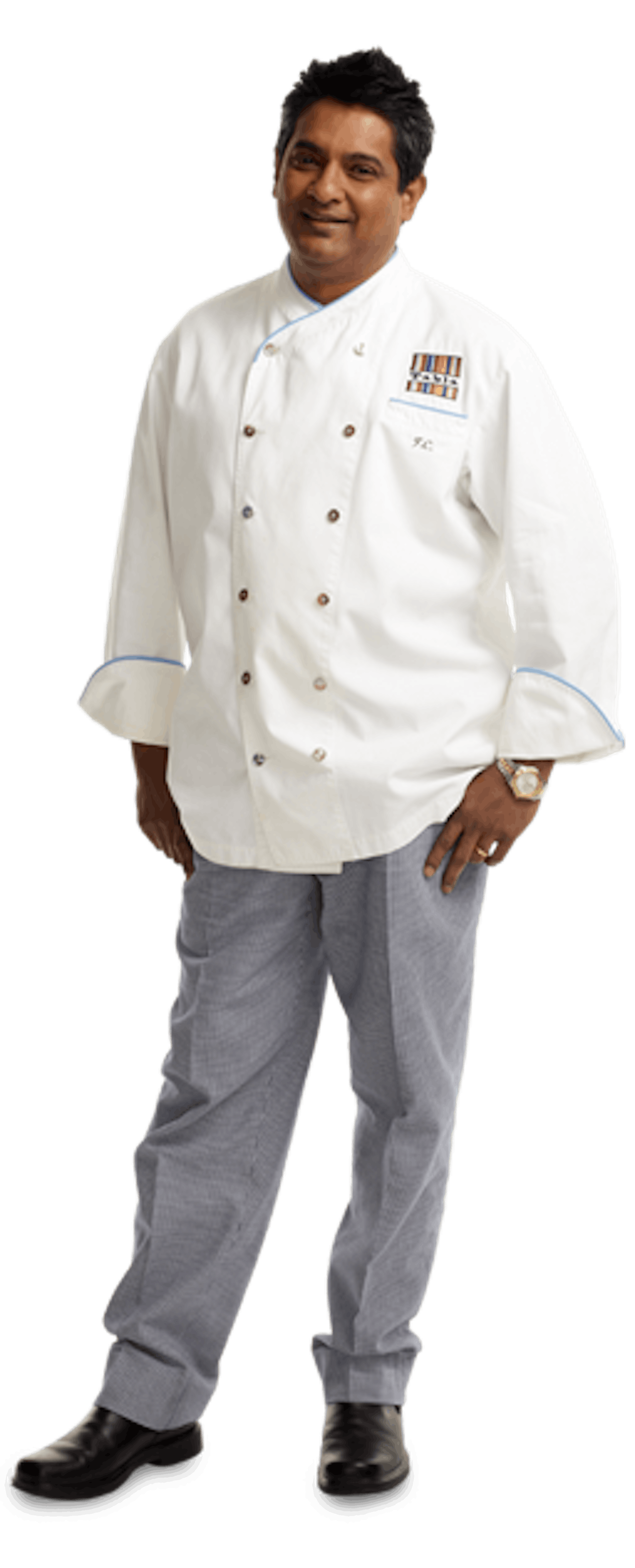 Guests won't find Indian-style carnitas or quesadillas on the proposed menu. Those were among the dishes he prepared on the final episode of ANGR, to the criticism of fans and judges who were shocked at his Mexican-themed foods, though they had Indian flavors "I might have gone a little too Mexican," he admitted, of his attempt to please the judges. Sudhir's proposed restaurant – he still likes the name Spice Coast and his original idea Tiffin Box – will likely include the likes of sautéed greens with lentils, cooked with toasted coconut and dried red chiles, served on rice or in wraps. He wants to use distinctively Indian breads, made fresh every day. On the NBC show, he had to substitute tortillas because no one had sufficient experience to make the real thing. And there will be no beef at his restaurant. "It's counter to what Indians believe. I want to represent my country."Sudhir has been talking over his restaurant concept with Floyd Cardoz, at right, formerly of Tabla in N