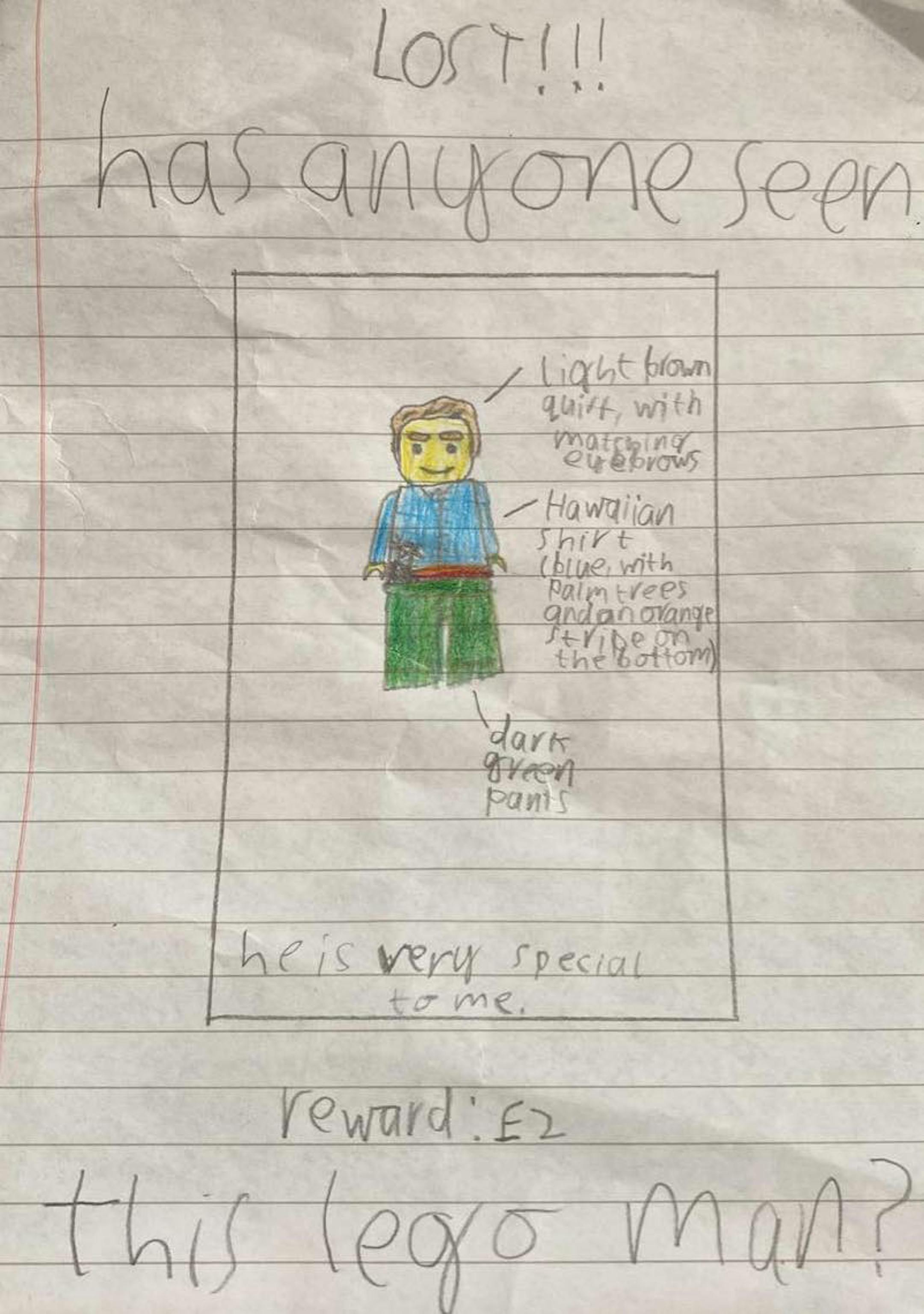 "It was quite a special Lego man because I made him," said Jack, 10, who had visited the Legoland Discovery Center in Manchester, England, over the summer, and modeled a Lego figure after himself. He named the toy "Mini Jack" and carried it with him wherever he went. "It did look quite a lot like me."
