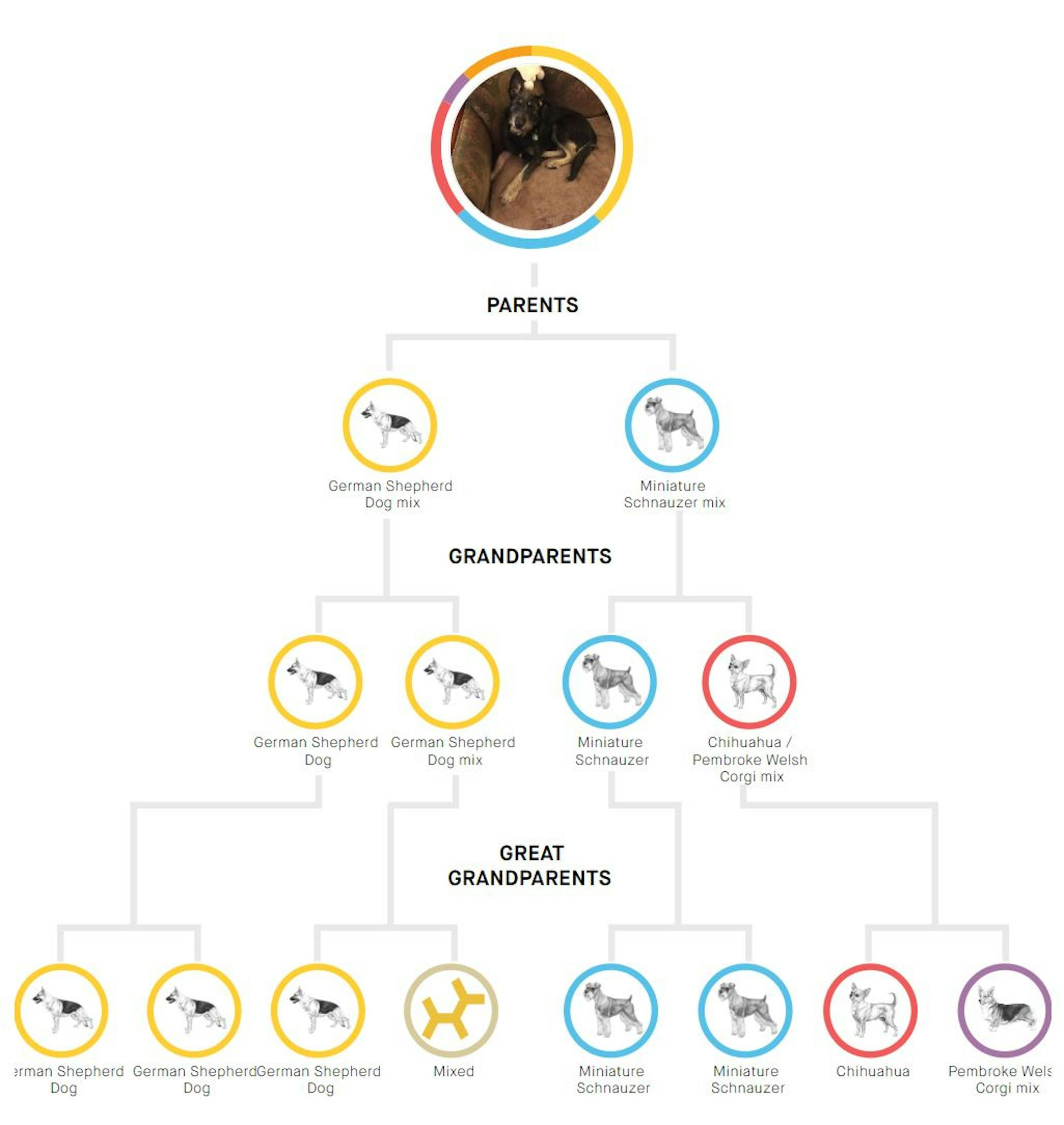 Within a few weeks, I had a trove of information about Juniper's breed makeup, ancestry and likely traits. The results showed her to be about 40% German shepherd, 25% miniature schnauzer, 20% Chihuahua and 5% Pembroke Welsh corgi. She was also about 10% "supermutt," which comes from inheriting genes from multiple generations of mixed-breed dogs.
