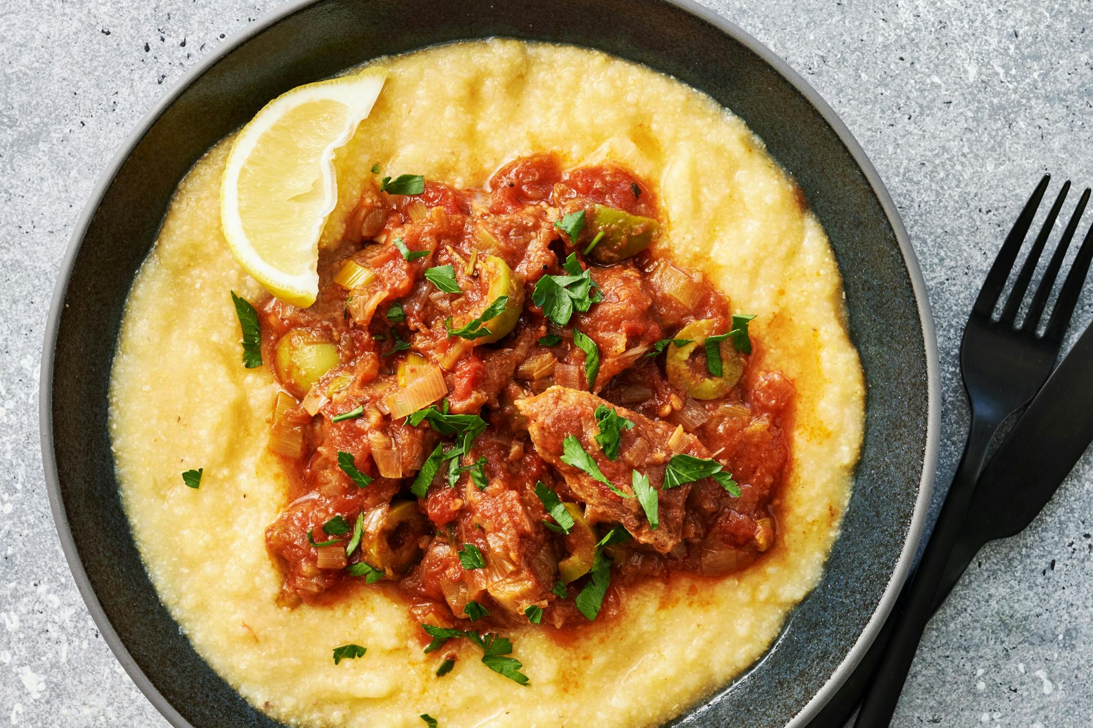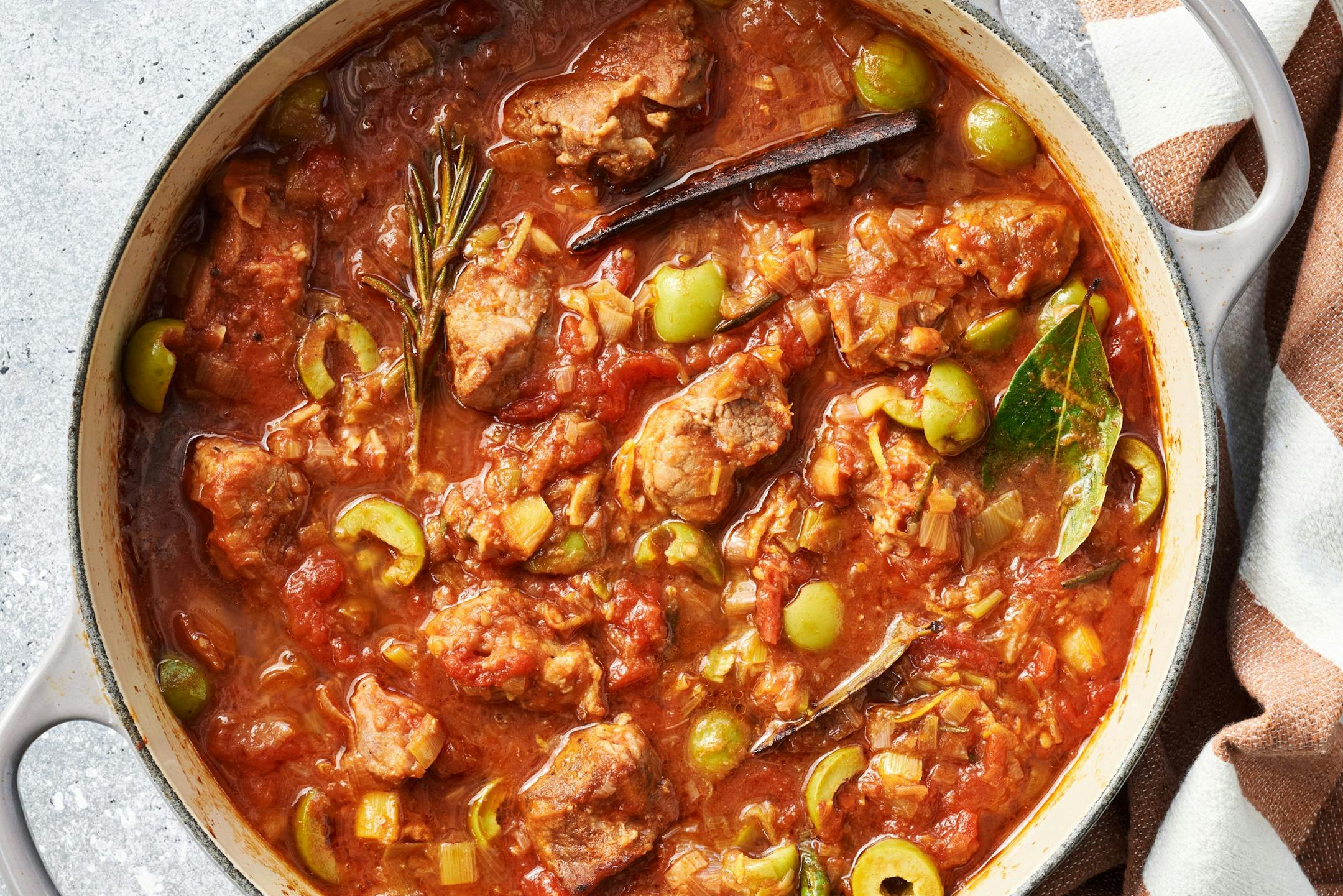 You can braise pork shoulder with practically any combination of liquid and aromatics. For this recipe, I combined olives, lemon and tomatoes to make a bright and lively sauce that contrasts with the rich, succulent meat.