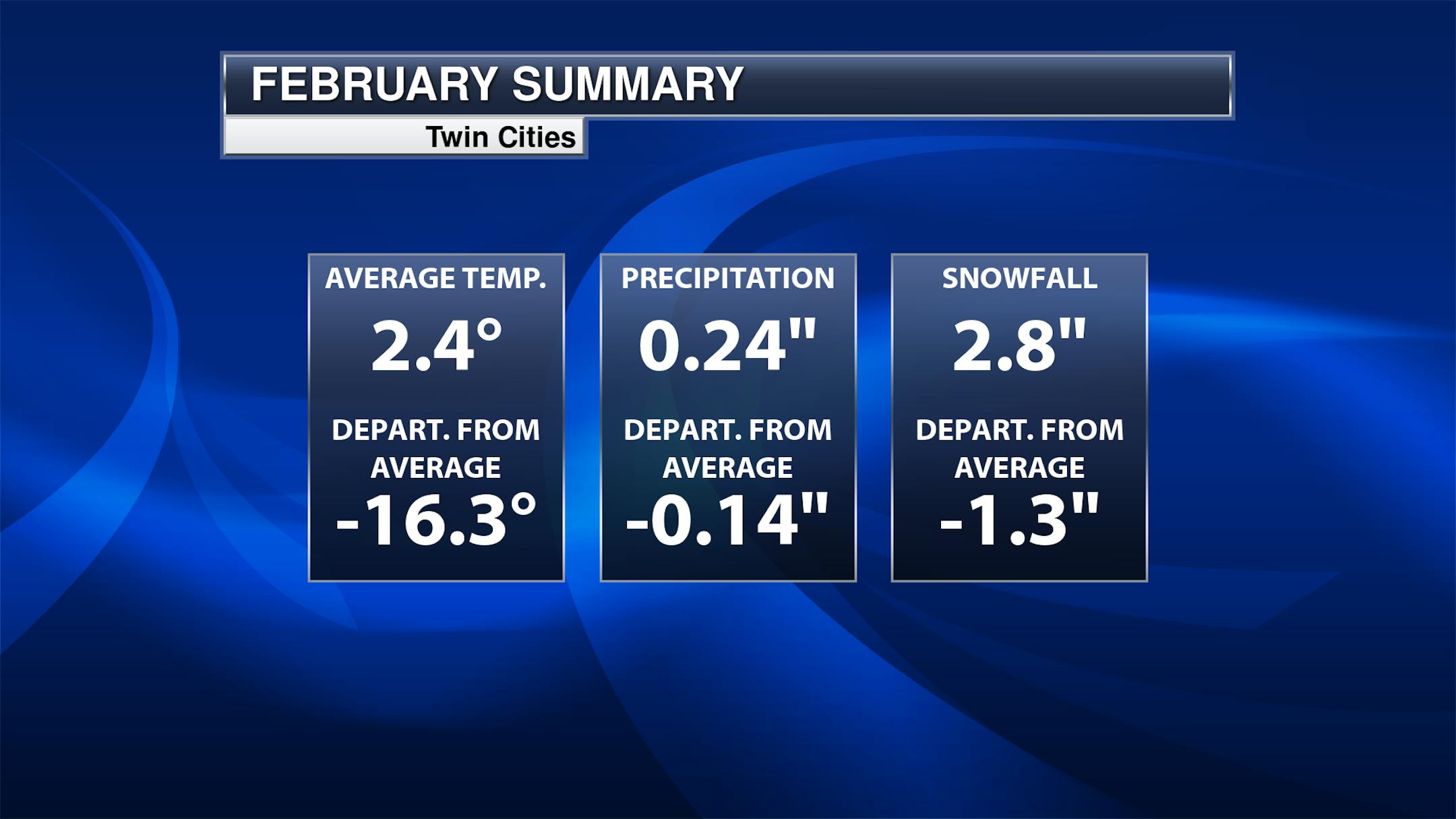 It has certainly been a very cold start to February. Through Tuesday, the average temperature at MSP Airport has only been +2.4F, a good 16.3F degrees below average and the 8th coldest start to February on record. With the cold weather in place, we haven't seen a lot of snow/precipitation, and are below average in those categories as well.