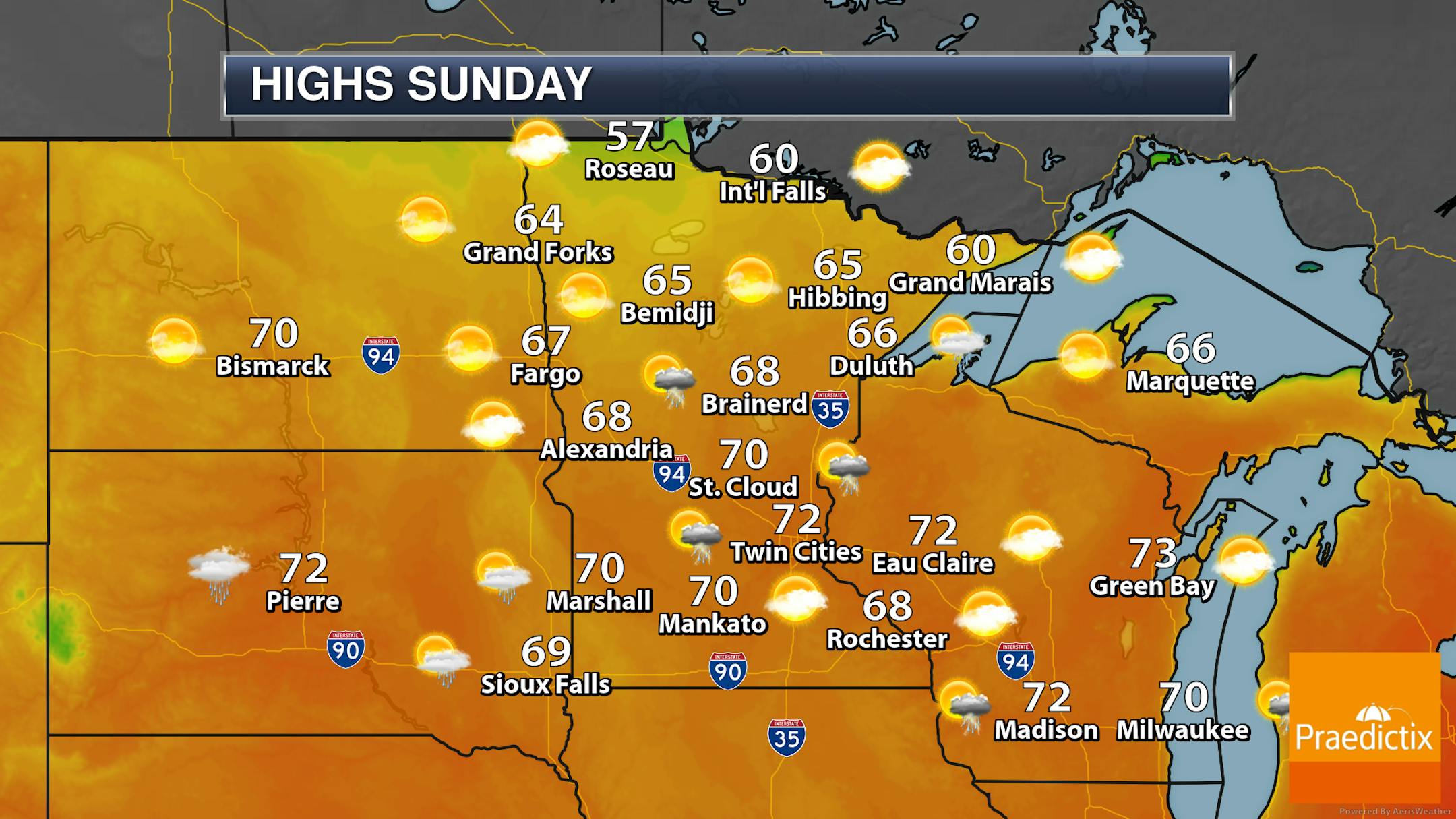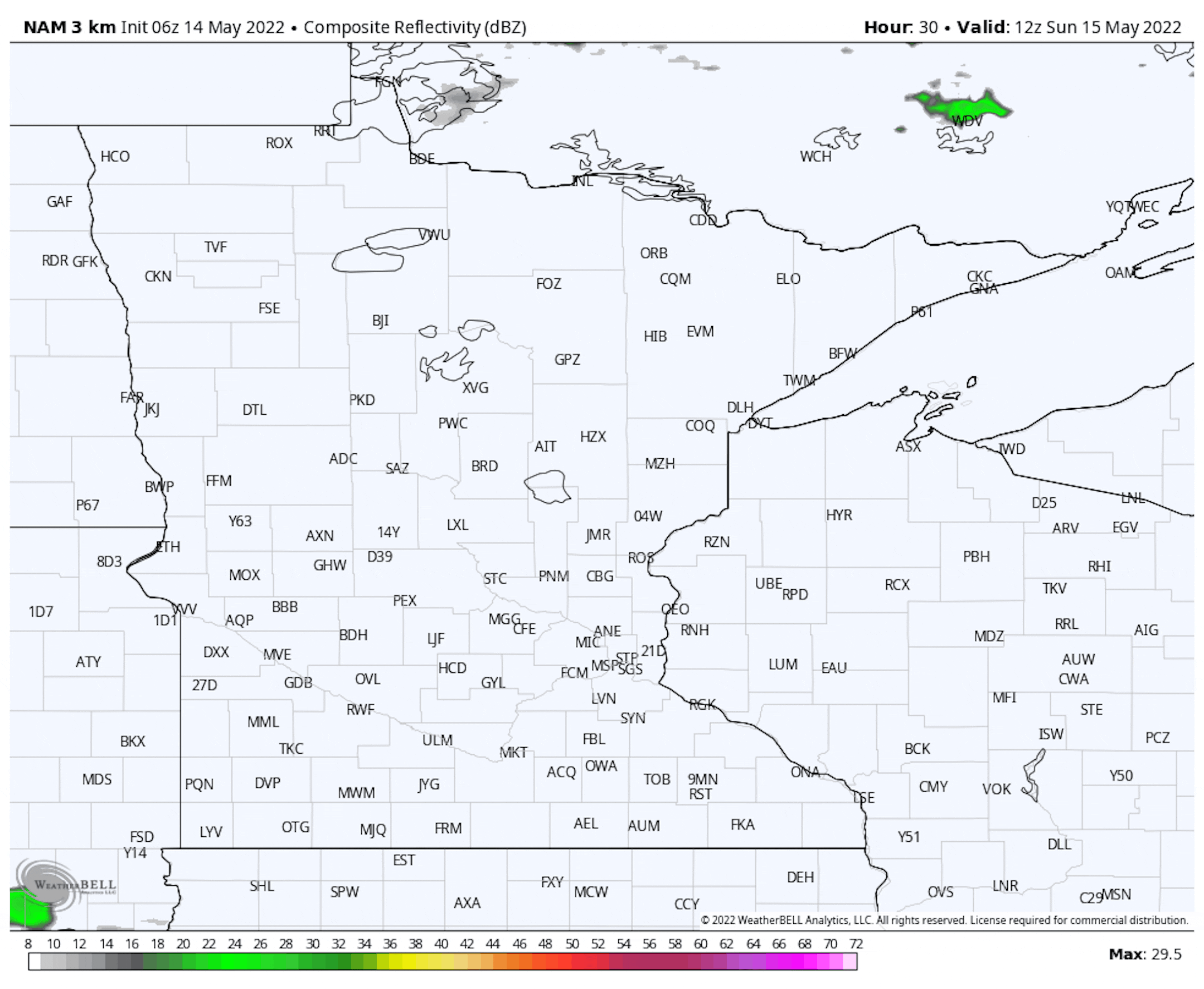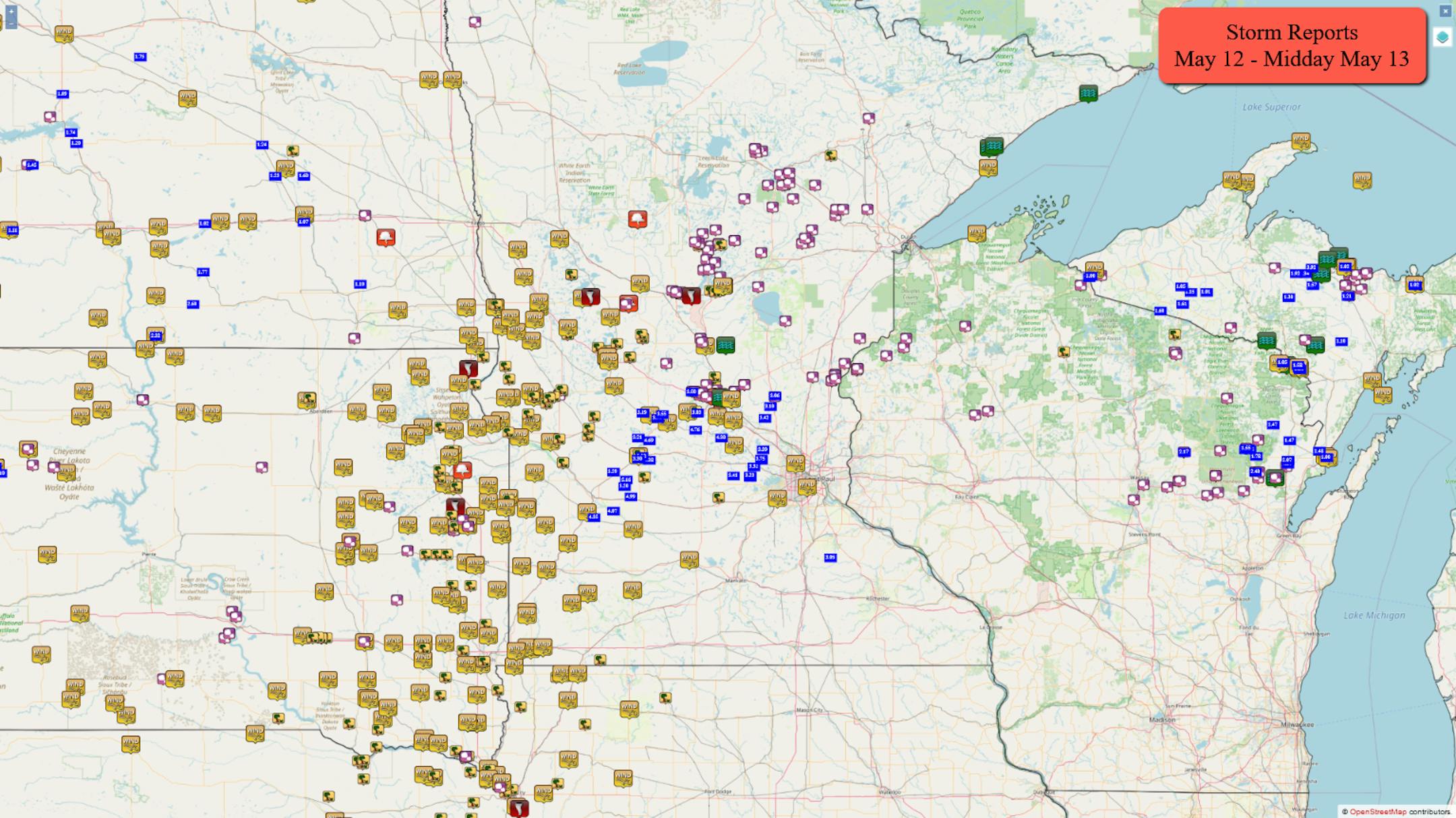 As mentioned, it could be a bit breezy and there could be a bit of a chop on area lakes for the second day of the Minnesota Fishing Opener weekend. We'll see west winds sustained around 5-15 mph, with many areas of the state seeing at least 20+ mph wind gusts. Some of the strongest wind gusts will be during the midday to afternoon hours.