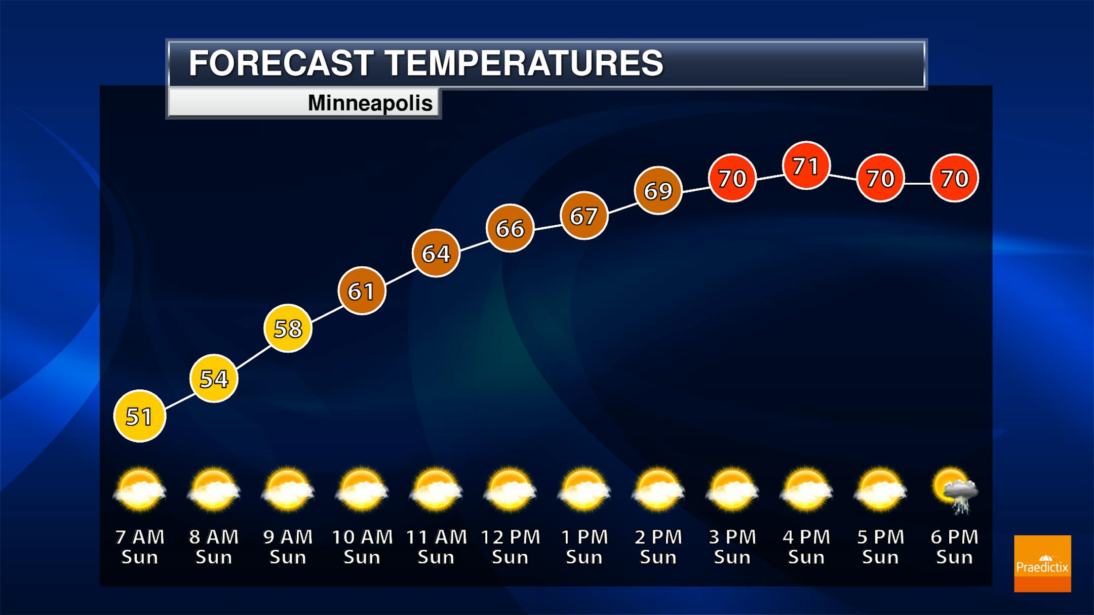 So while we'll keep an eye on that shower chance (which really is only at about 20%), we'll see a mix of sun and clouds to mainly sunny skies. Highs will only be in the upper 50s up toward northwestern parts of the state, but they'll climb into the low 70s in the south.