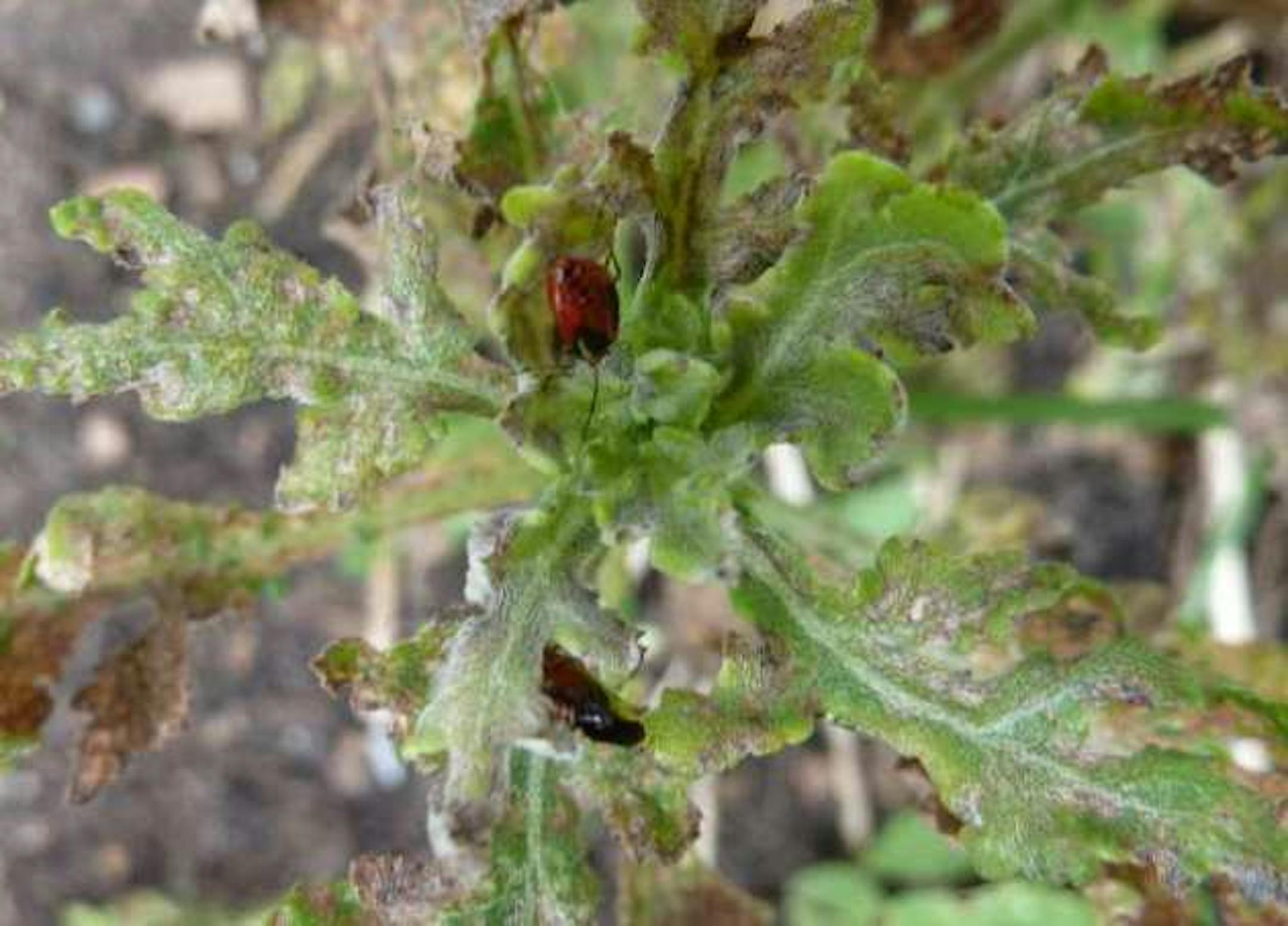 This year, the bugs have attacked my garden so viciously that on some plants the dots merged until the leaves turned a crisp brown and began to curl. One of my mammoth mums looks beyond help.