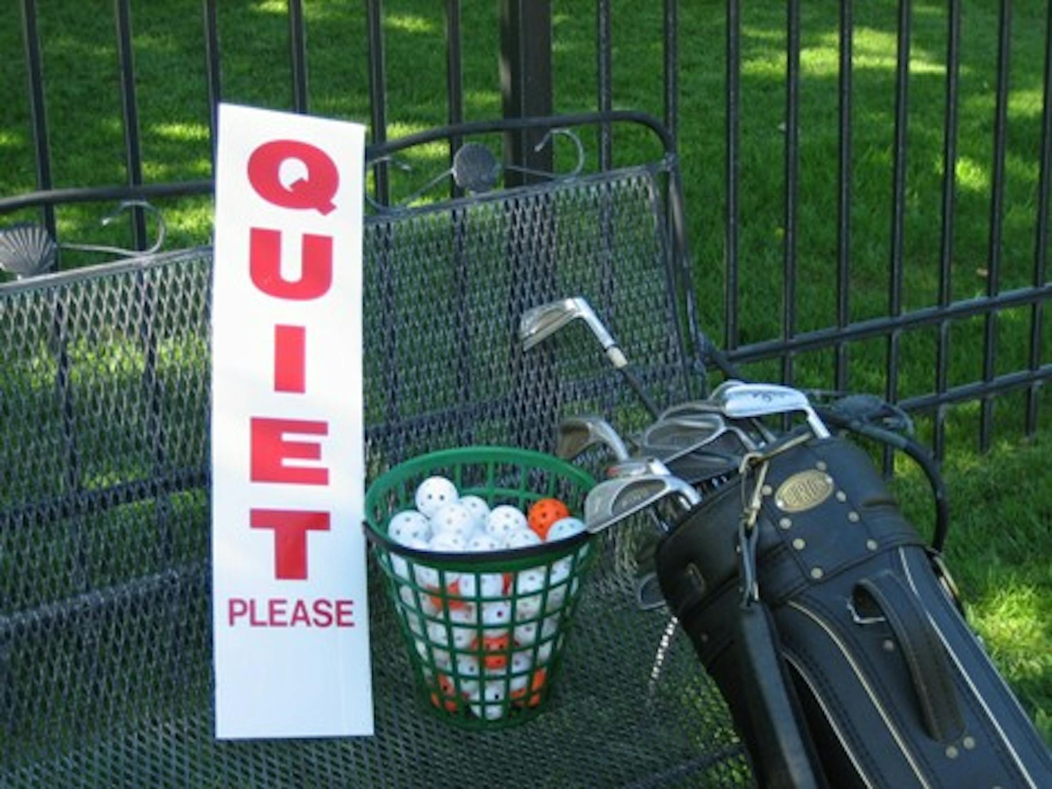 My husband John and I began having this tournament in our back yard in 1996 and we call it the "McPhee Challenge". We give prizes for closest to the pin, and longest drive, but the coveted prize is a navy blue jacket w/our McPhee Challenge Champion crest on it! This jacket goes to the individual Ladies and Men's champion. These jackets (bought at goodwill) go home with the winners, only to return and be presented to the next year's winners!