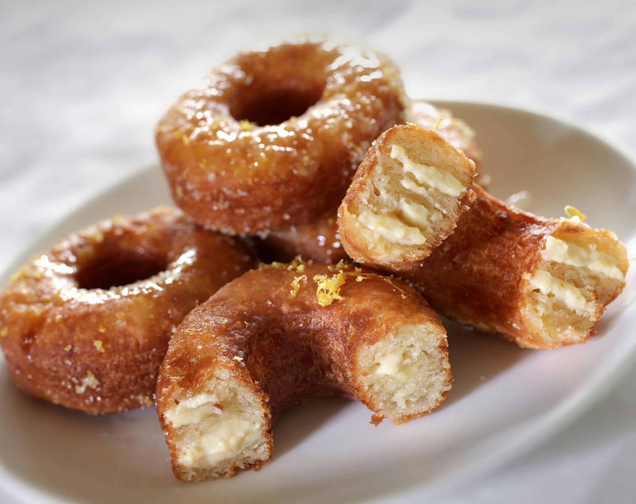 After converting Kimber's recipe from metric, we tweaked a few things, making them a bit smaller (thus reducing the degree of indulgence), the pastry cream a bit creamier, and shifting the frosting to a glaze. We considered a garnish of ground-up Lipitor tablets, but decided that would send the wrong message.