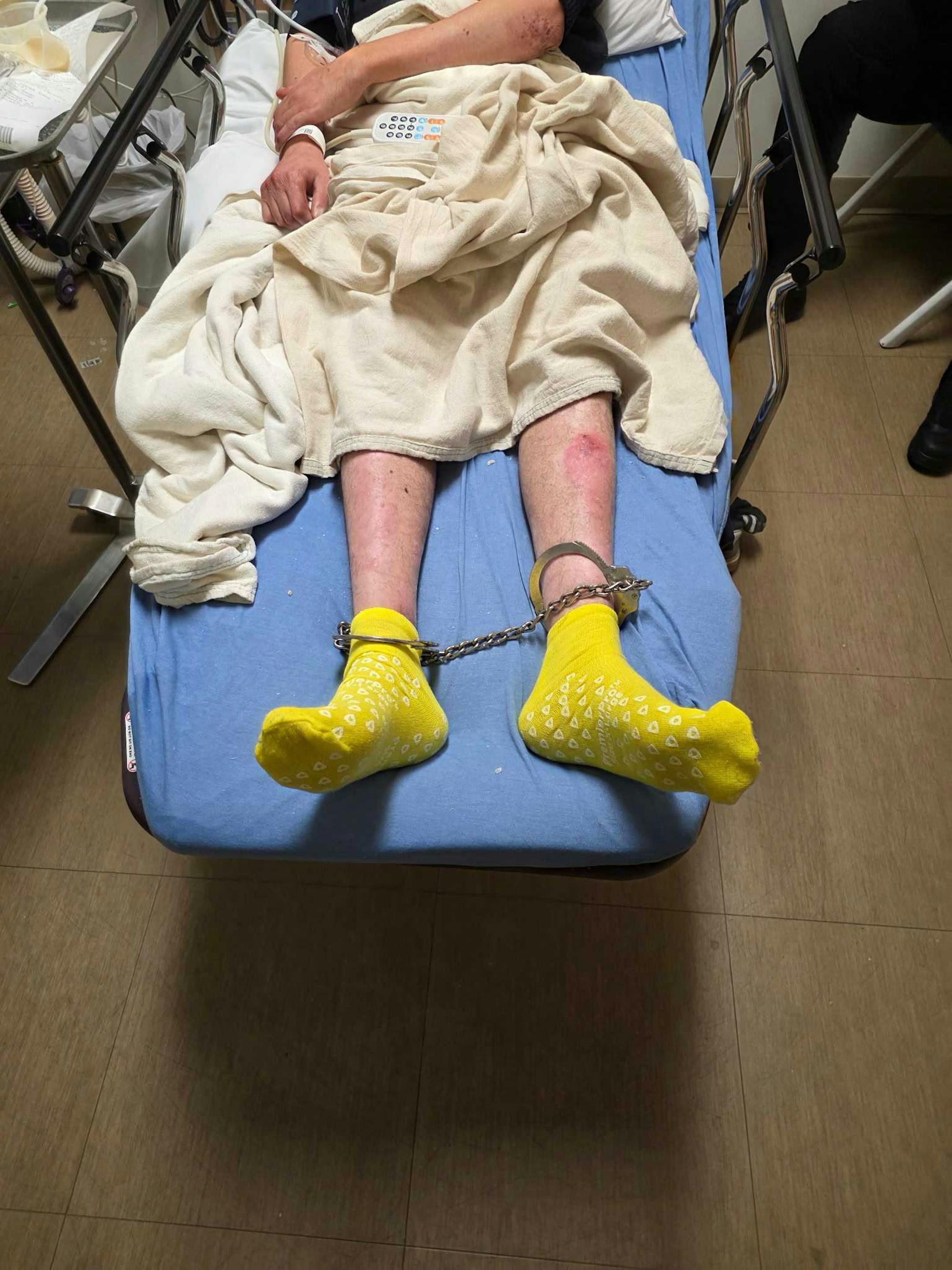 Immigration agents detained Hani Duglof, 32, this past weekend and bound his legs in metal cuffs, even though he has a condition called epidermolysis bullosa (EB) that makes his skin and even his throat as fragile as paper, according to his brother. The friction from rubbing exacerbates the redness and wounds on his legs. He’s since been moved in shackles to a hospital.