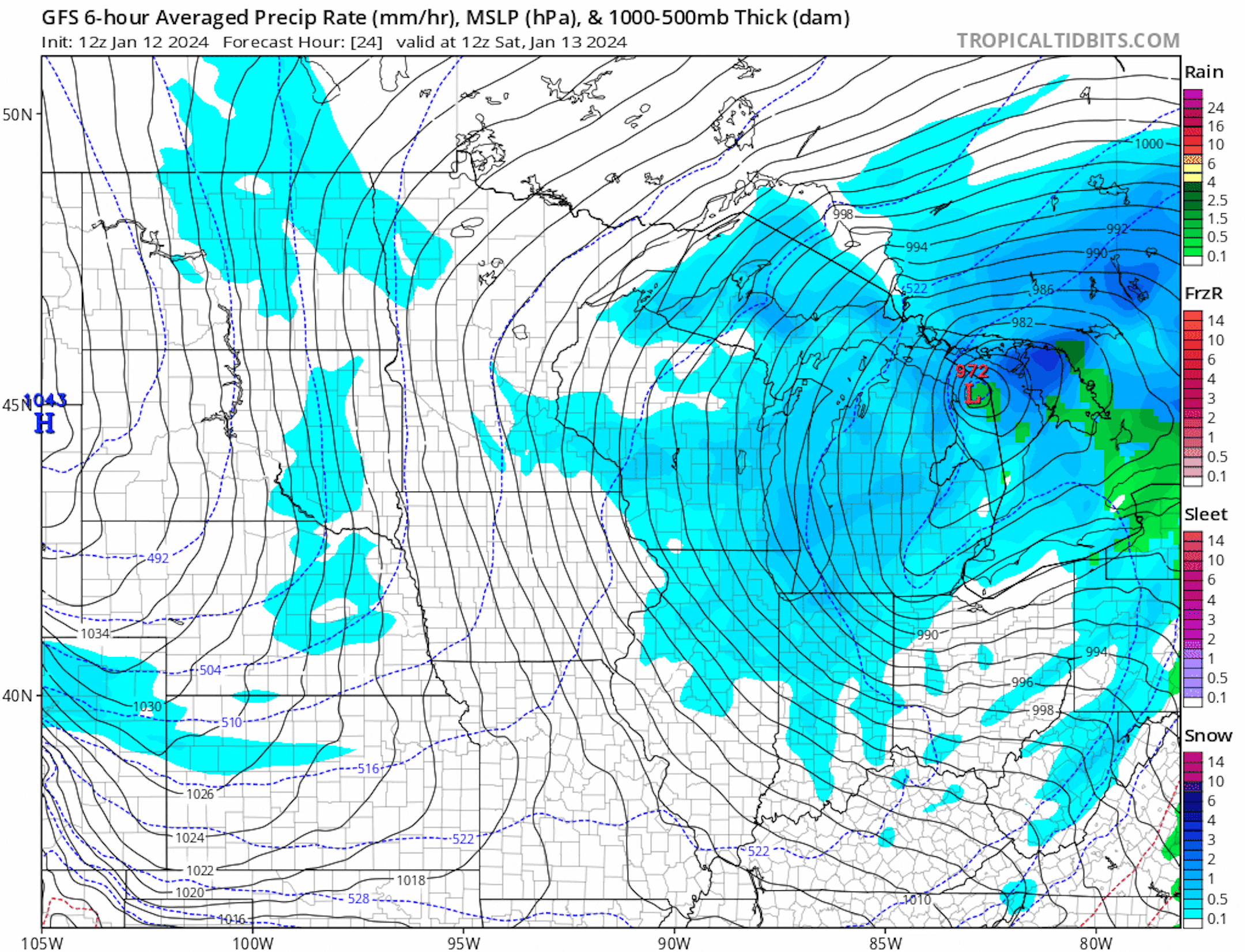 Here's the simulated radar from AM Saturday to AM Sunday. There could be a little more light snow falling during the day Saturday, but amounts will generally be less than 1" across the region. Unfortunately, winds will continue to remain strong with very cold temps and wind chills developing.