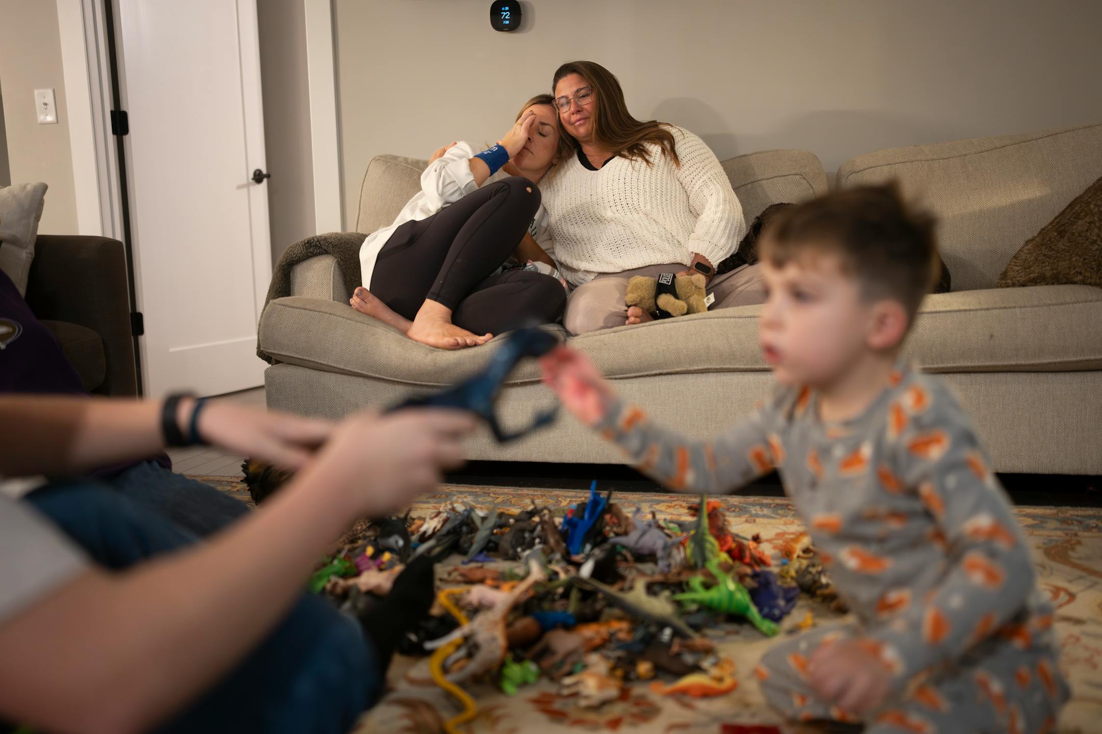 Sometimes, on bad days, Mollie reaches out after kids’ bedtime to a support circle: Other neighborhood moms who come by whenever she asks.