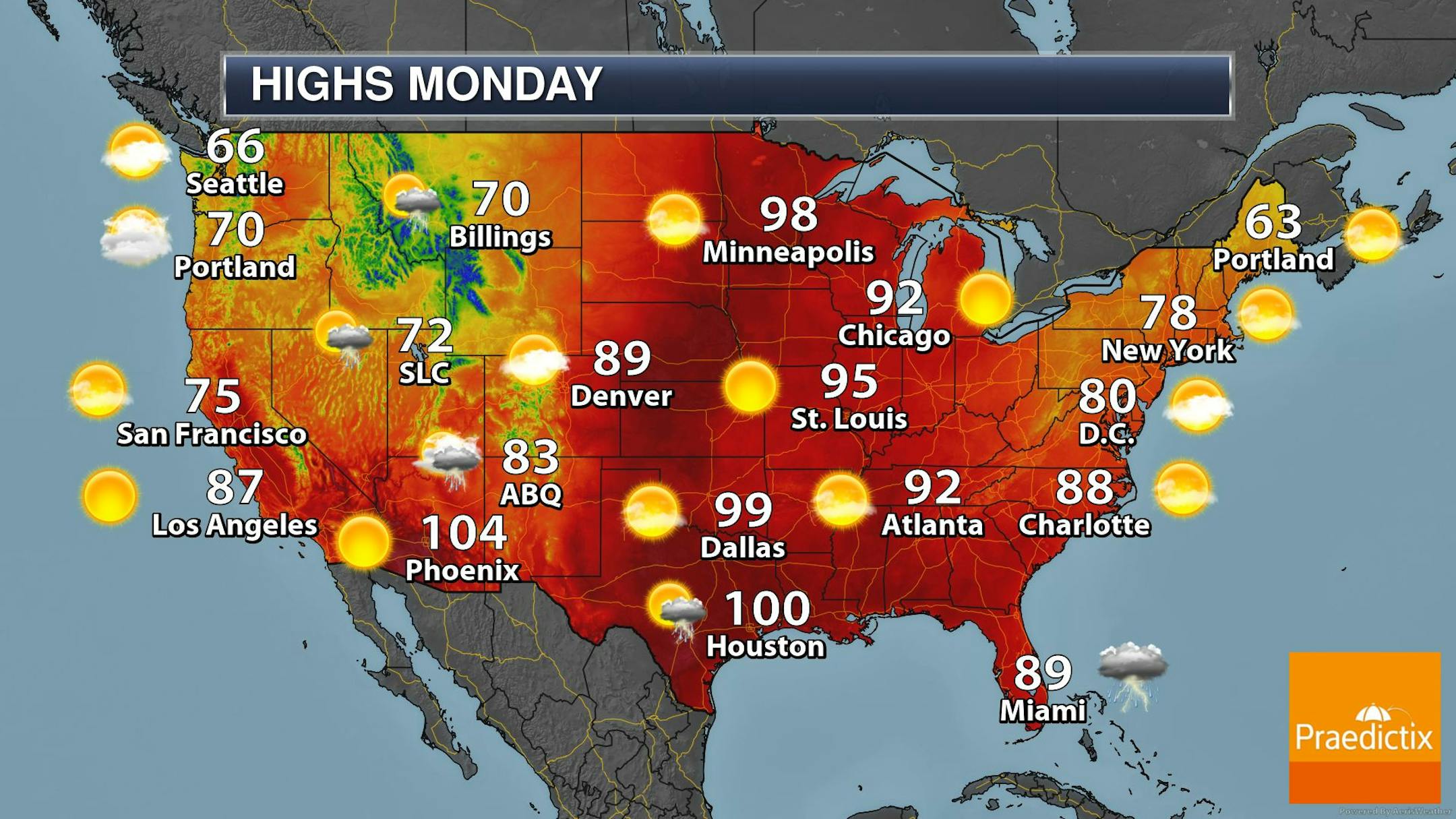 * WHAT...Dangerously hot conditions with heat index values up to 100 this afternoon and 106 Monday afternoon, with overnight lows only dropping to around 80.