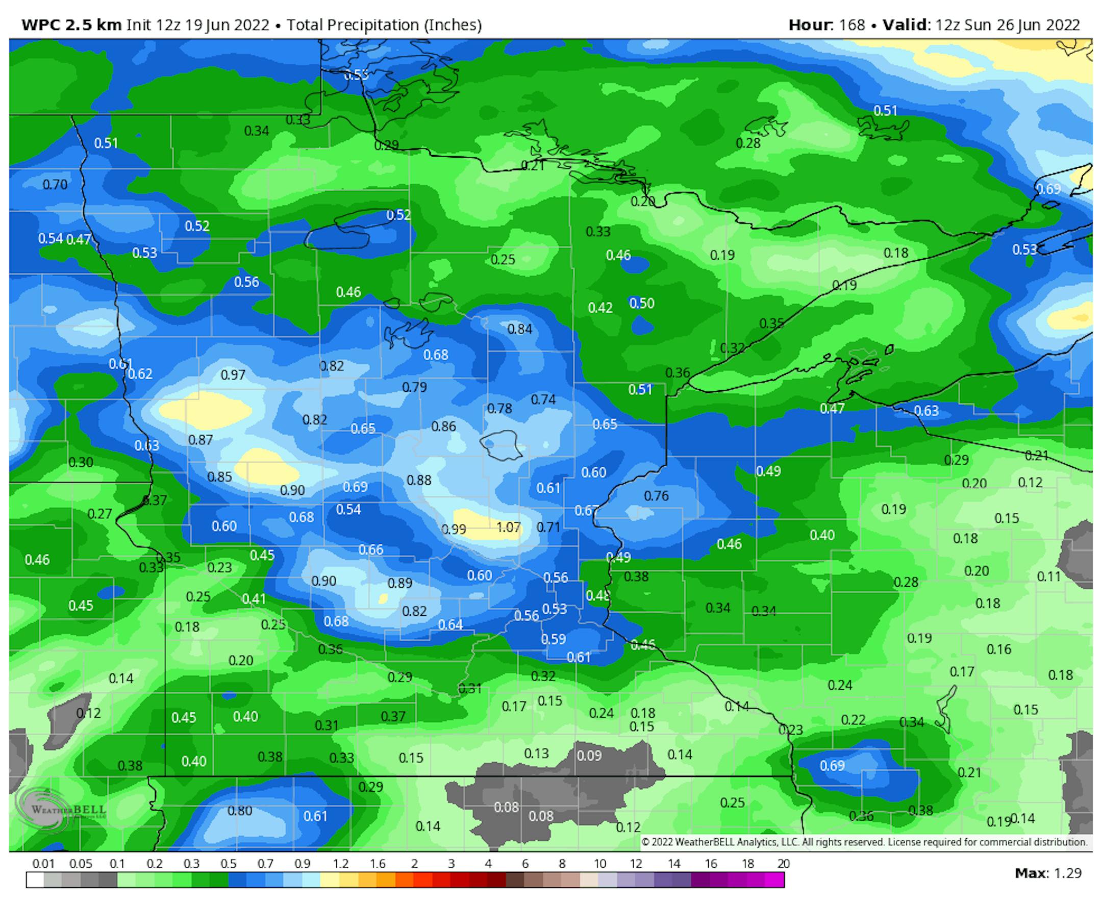 Here's the extended rainfall potential through the end of the week. There will be a few areas of rain Monday night. There also appears to be a chance of showers and storms later in the week and potentially the upcoming weekend. Stay tuned...