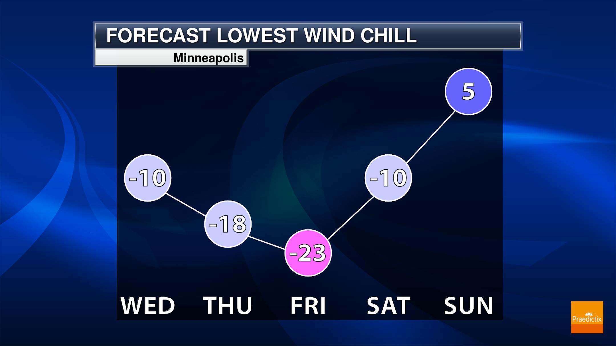 Bitterly cold wind chills will continue through the week ahead with subzero wind chill values dipping into the -10s and -20s.