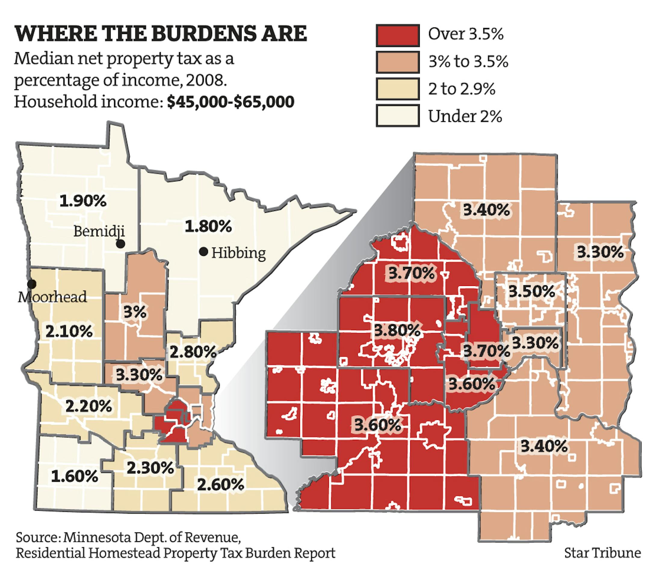 To decide whether this approach is likely to solve the inequity problem, one might want to know where, in fact, the Minnesotans live who suffer most cruelly from property taxes. Let's define a suffering household.