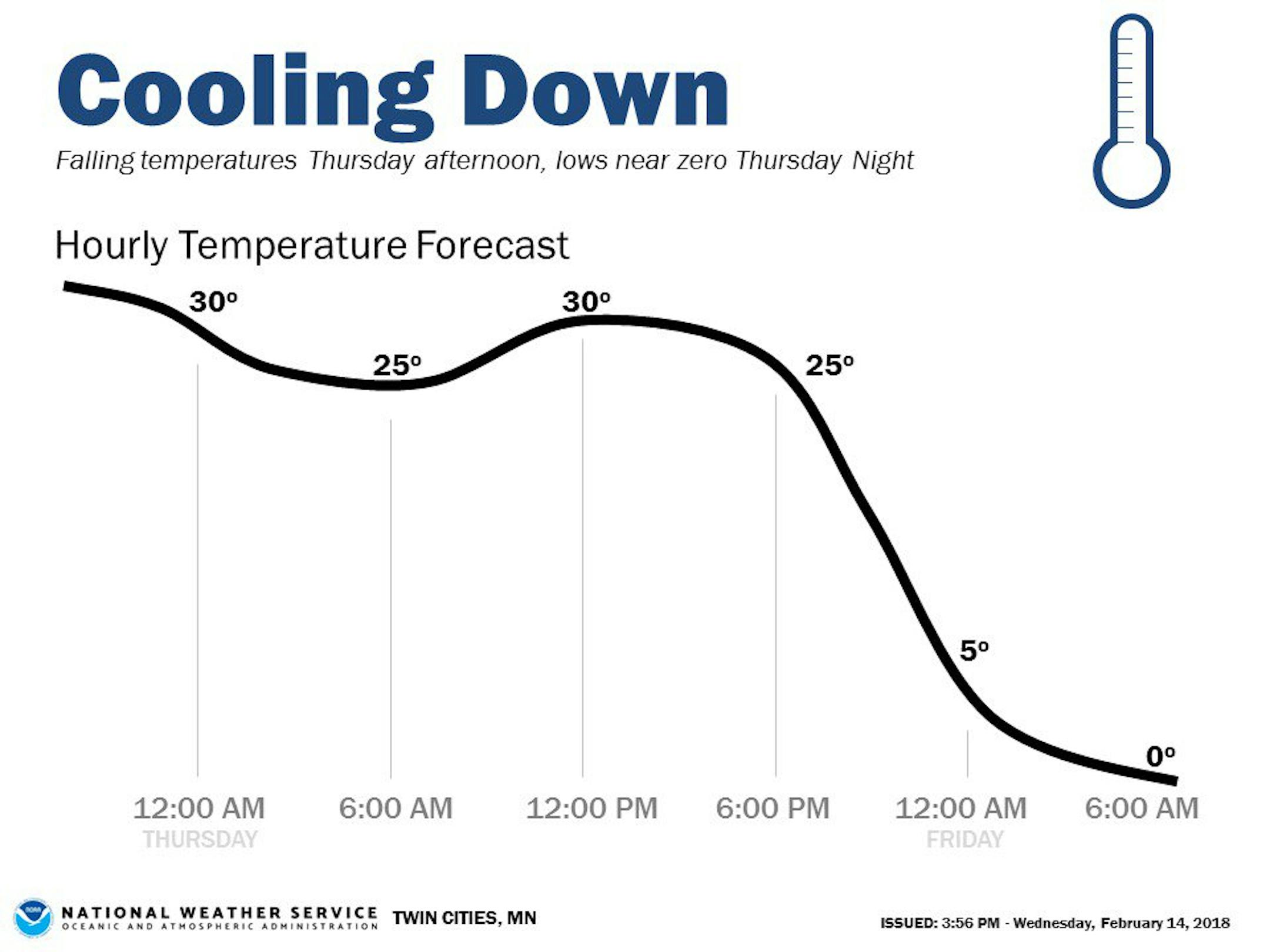 Get out and enjoy it. A one-day reprieve from winter is on tap for Valentine's Day as temperatures will soar into the low 40s in the Twin Cities and even higher in parts of western Minnesota where thermometers could register 50 degrees, the National Weather Service said.