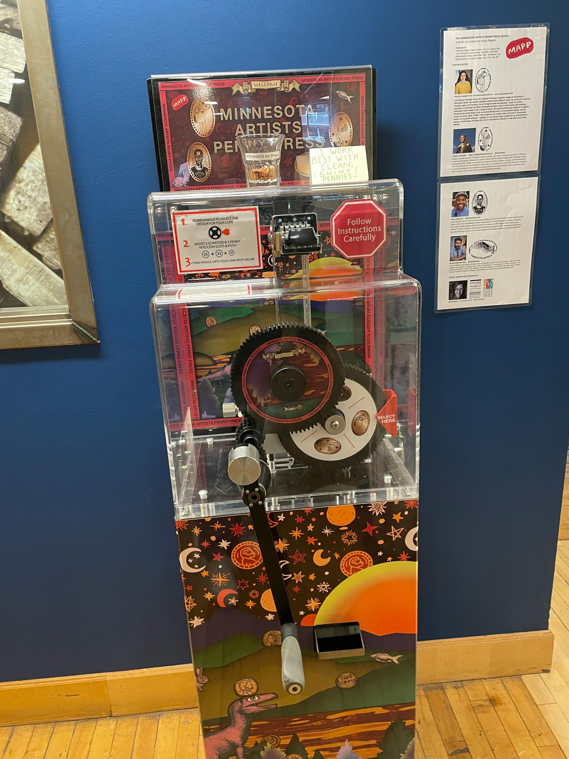 The penny-printing machine changes that dynamic. Baguss is one of several Twin Cities artists who have discovered ways of bringing art into more public and accessible places. This makes the art more welcoming and ensures it’s affordably priced and fun to experience.