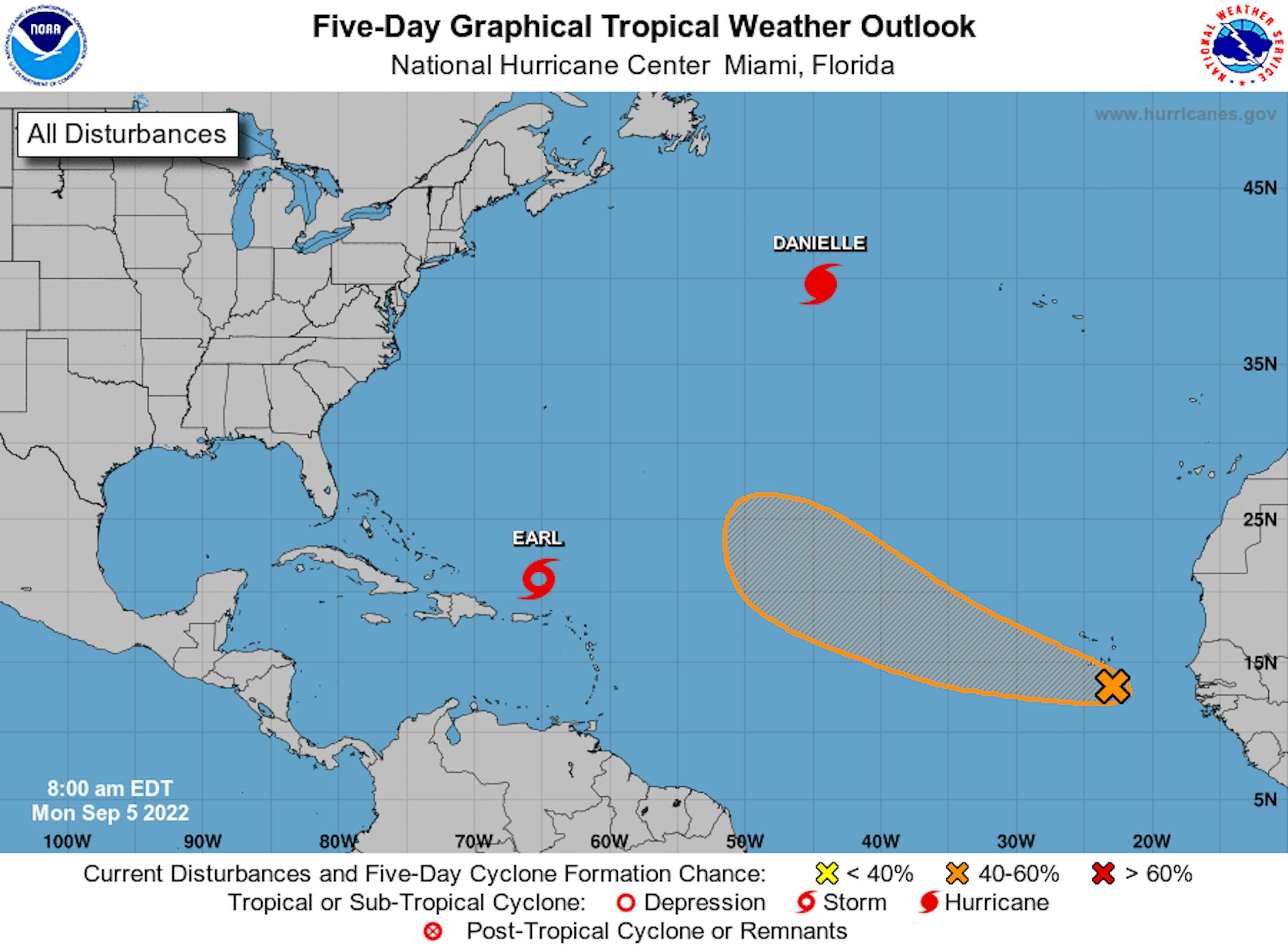 Here's the weather outlook from AM Tuesday to AM Monday. Weather conditions will remain quiet and mostly dry through the first full week of September. Later this week and into the weekend, there is a slight chance of showers and storms as a storm system slides through.