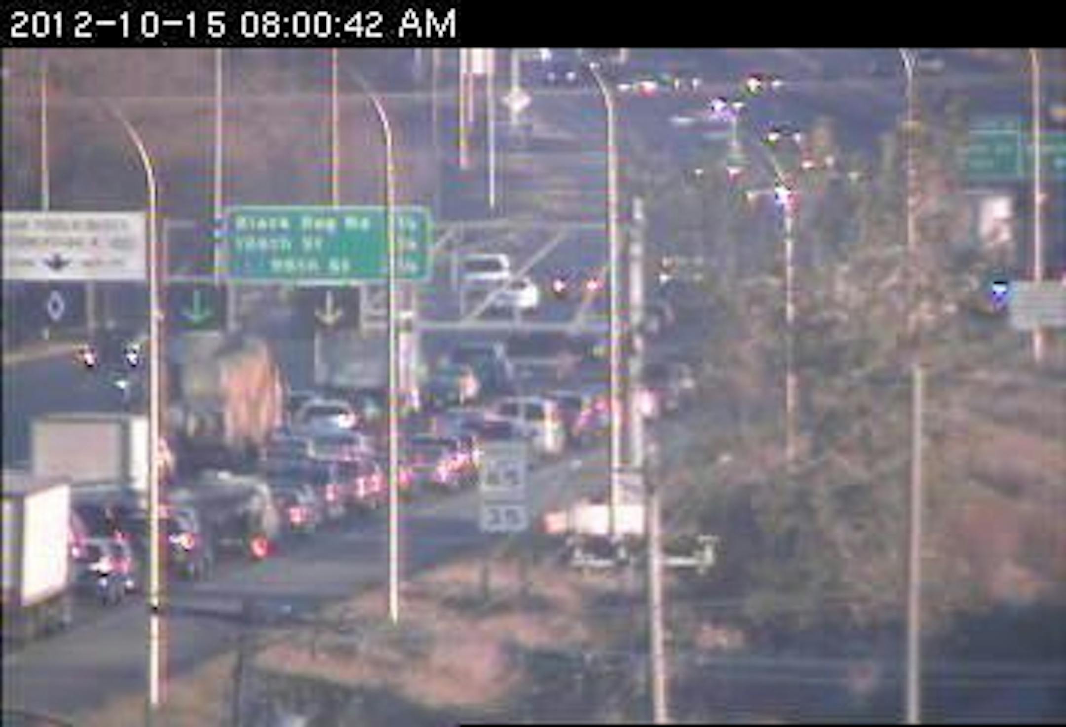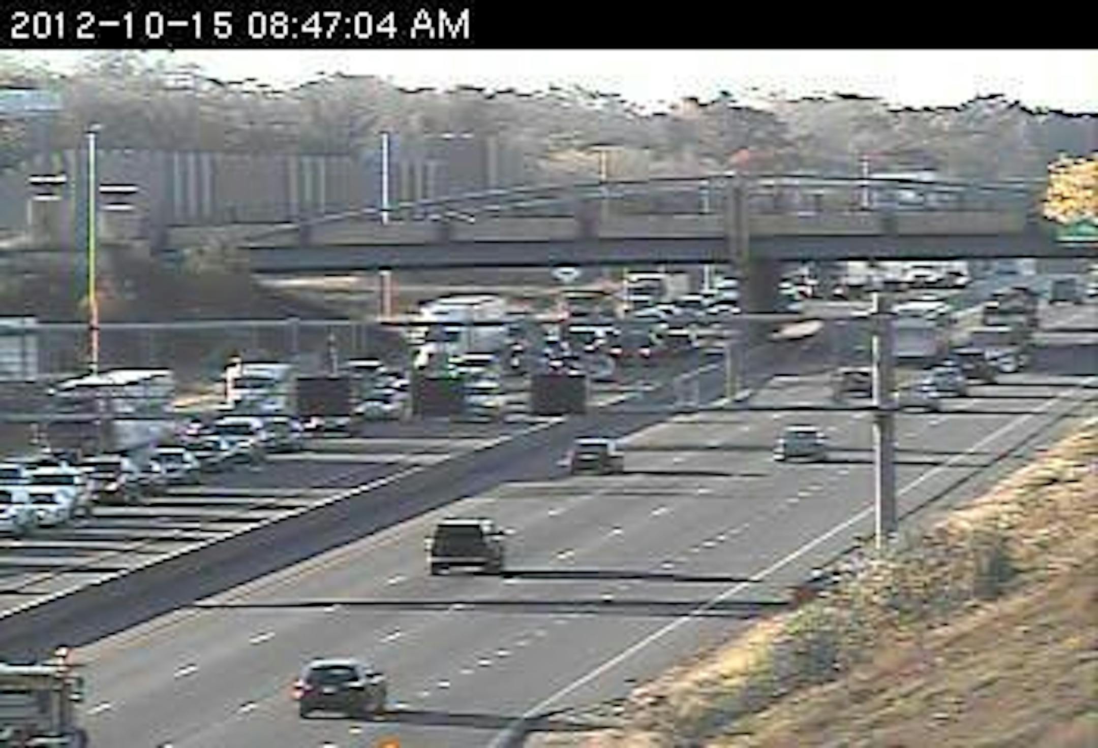 A crash that had been blocking the center lane of 35W northbound at Black Dog Road in Bloomington is off to the right shoulder.