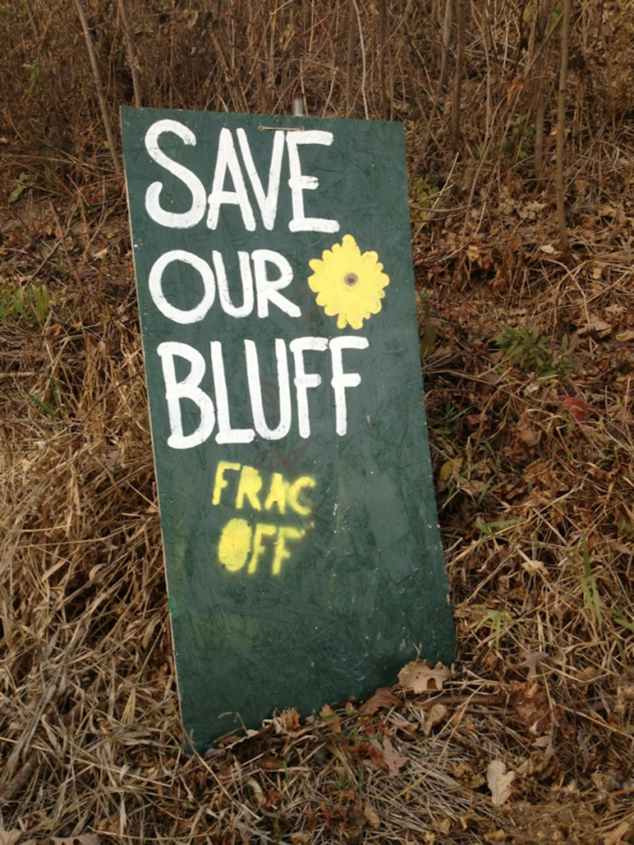 Recently, a new stencil -- "Frac off" -- has been added to the "Save our bluff" signs.