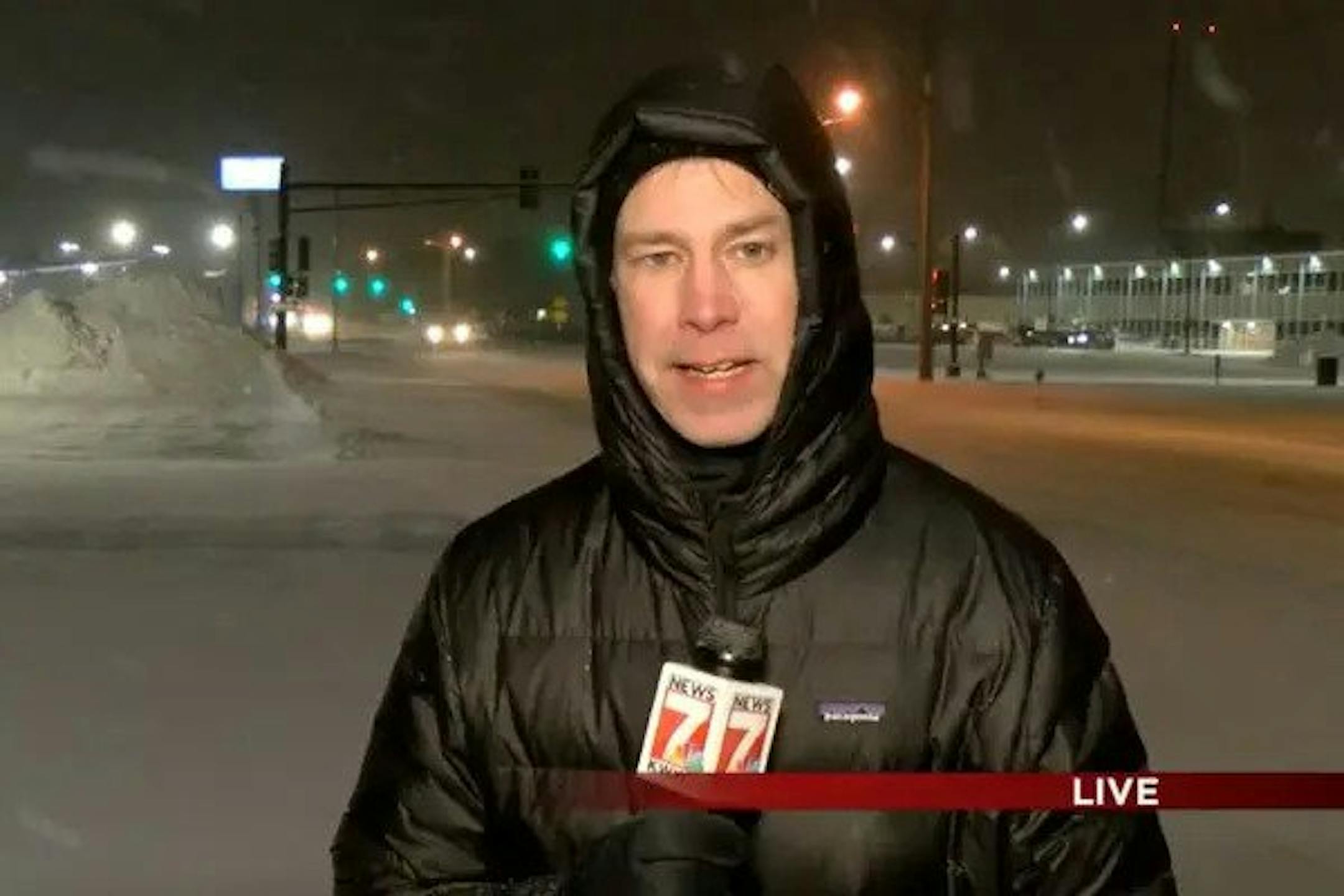 "What better time to ask the sports guy to come in about five hours earlier than he would normally wake up, go stand out in the wind and the snow and the cold and tell other people not to do the same?" Woodley told Ryan Witry, an anchor who was back in the warm, dry studio. "I didn't realize that there was a 3:30 also in the morning until today."