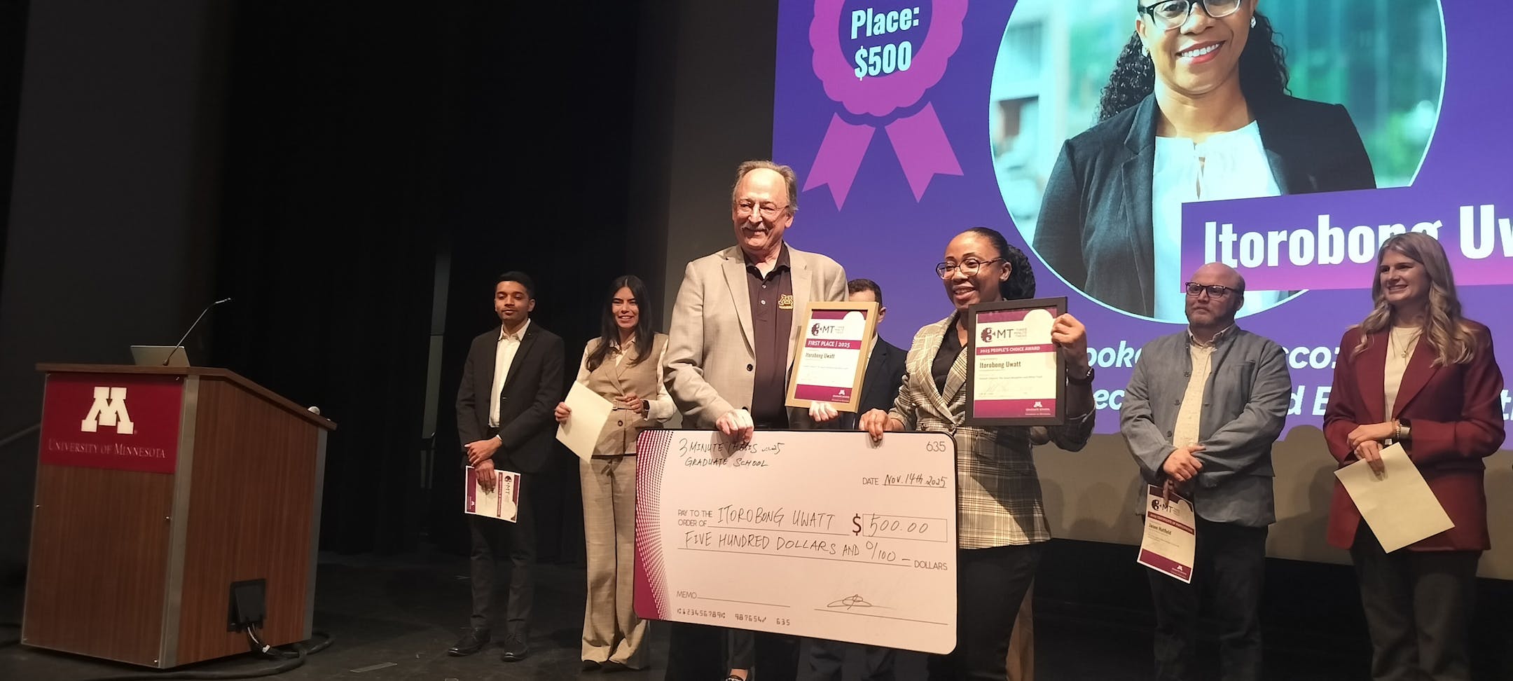 Kim was one of a dozen graduate students, each from a different school at the U, who competed in Three Minute Thesis, an international contest testing their ability to share complex research topics with the general public in a short timespan. Participating students had already won competitions at their college or school.
