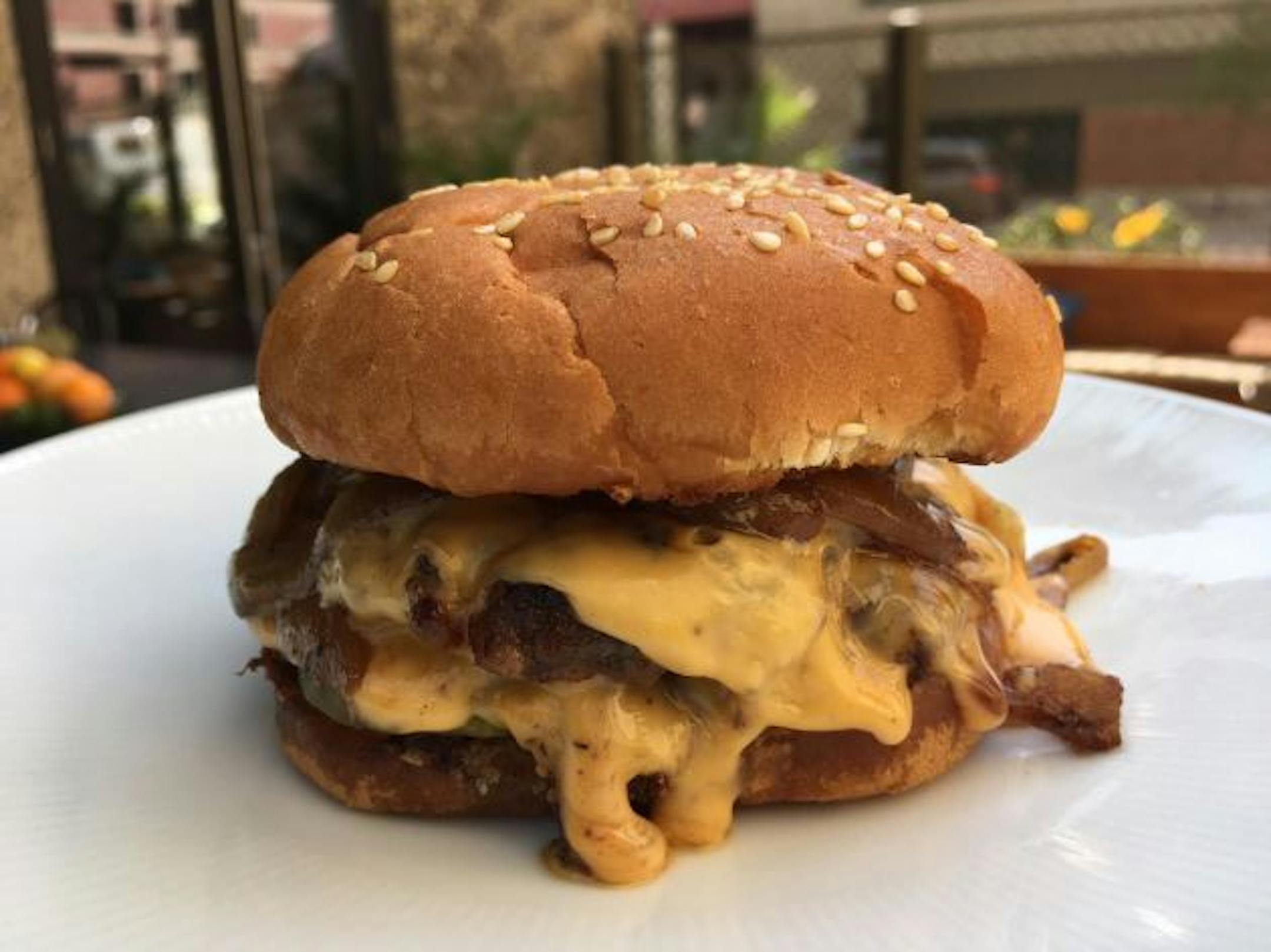 The burger: Not content to produce one of the Twin Cities most remarkable burgers, chef Mike DeCamp is at it again. This time, for a summer menu he's composed for the patio at Monello, DeCamp has borrowed elements of the popular burger he serves at Constantine (the cocktail destination that's a flight below Monello in the Hotel Ivy), then adds a few uncomplicated twists, including a second patty. He's dubbed the results the "Dirty Double," and, good readers of Burger Friday, it is phenomenal.