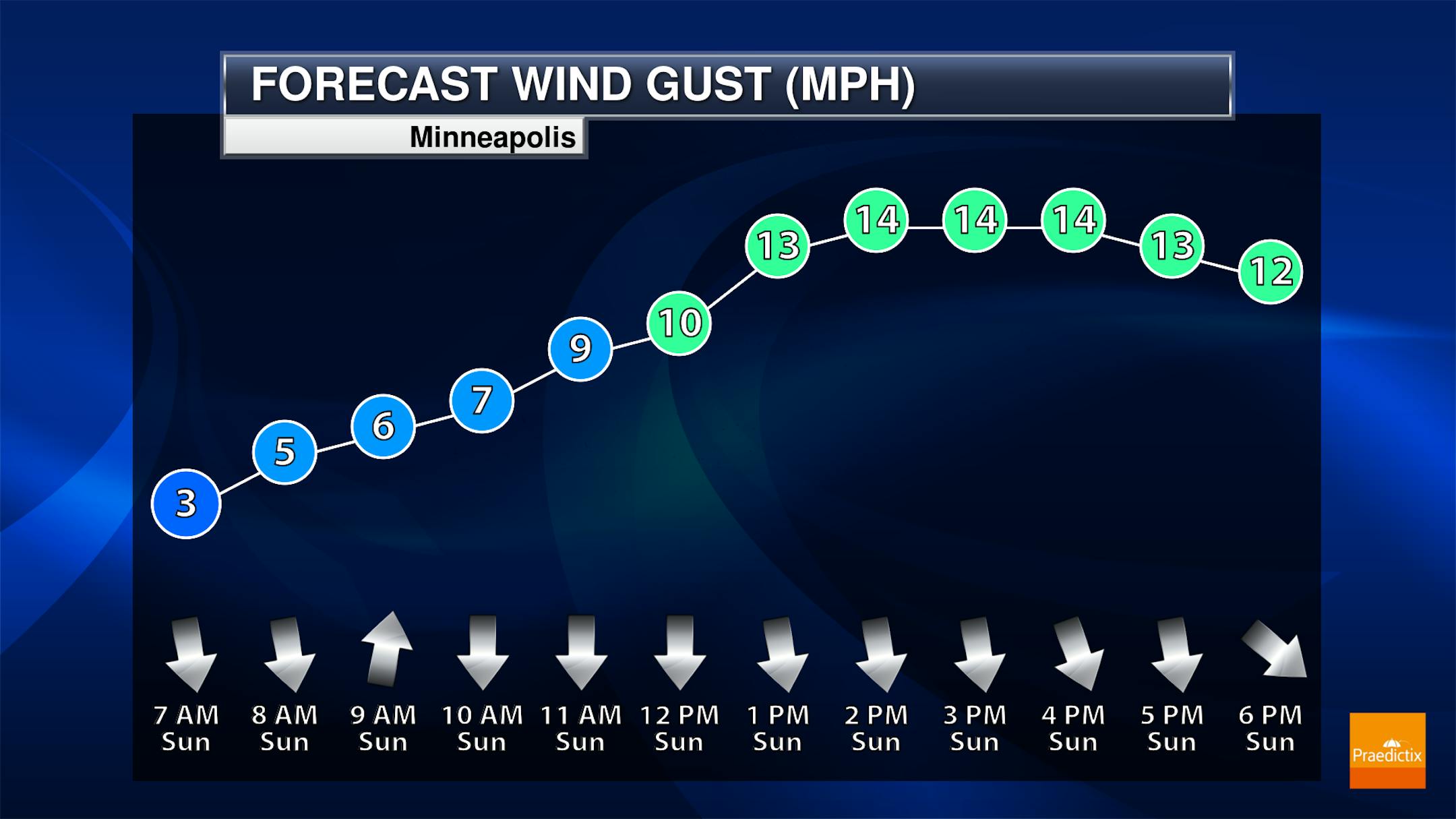 The weather outlook for Minneapolis on Sunday will be quite stunning for mid September. We'll see bright sunshine, light winds, comfortable dewpoints and near average temps. What else could you ask for? Maybe a MN Twins & Vikings win?