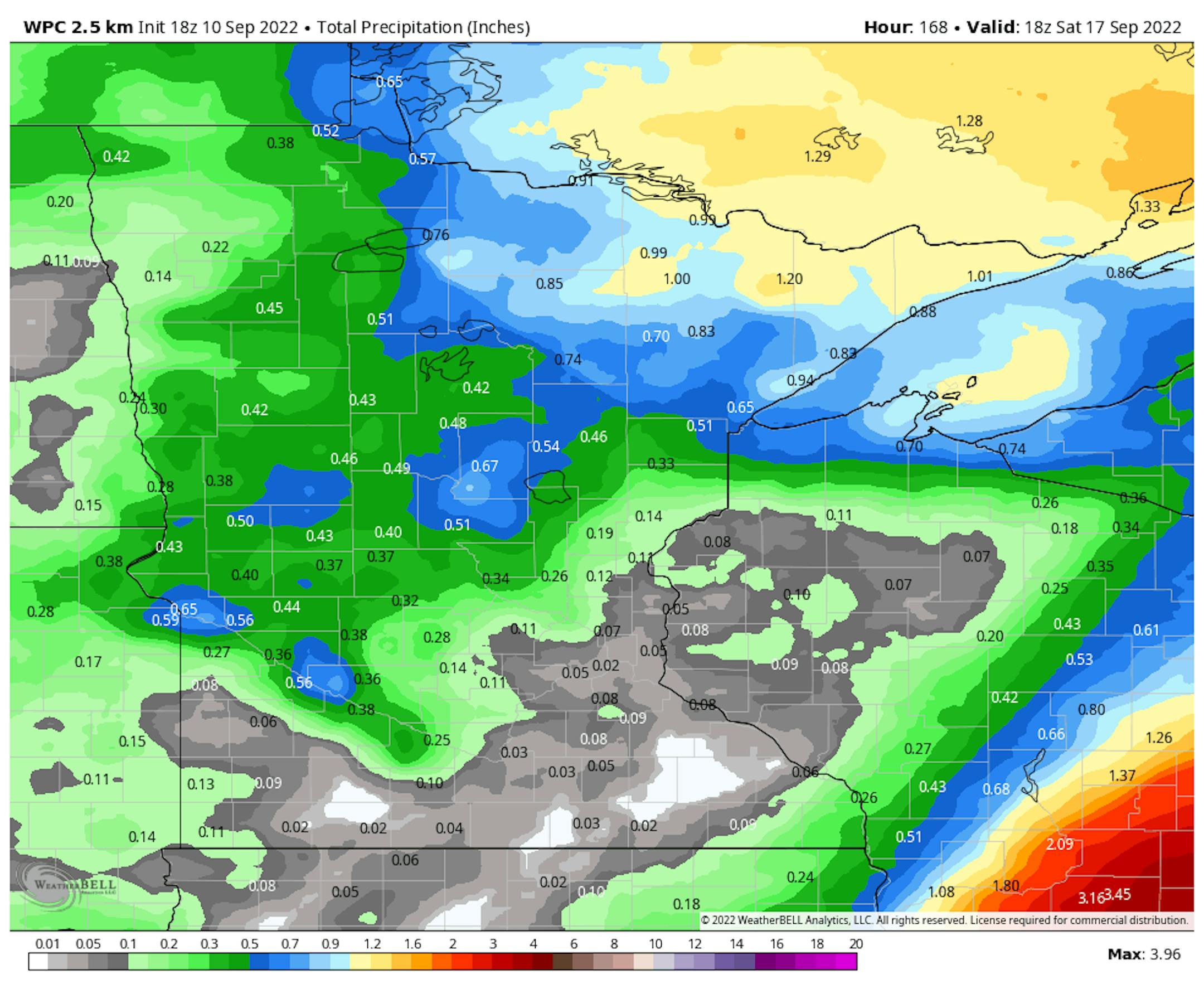 Lingering rain chances will be possible in Wisconsin on Sunday, but much of Minnesota will stay dry through the first half of the week. The next best chance of rain won't arrive until late week with some of the heavier precipitation amounts across the northern and western parts of the state.