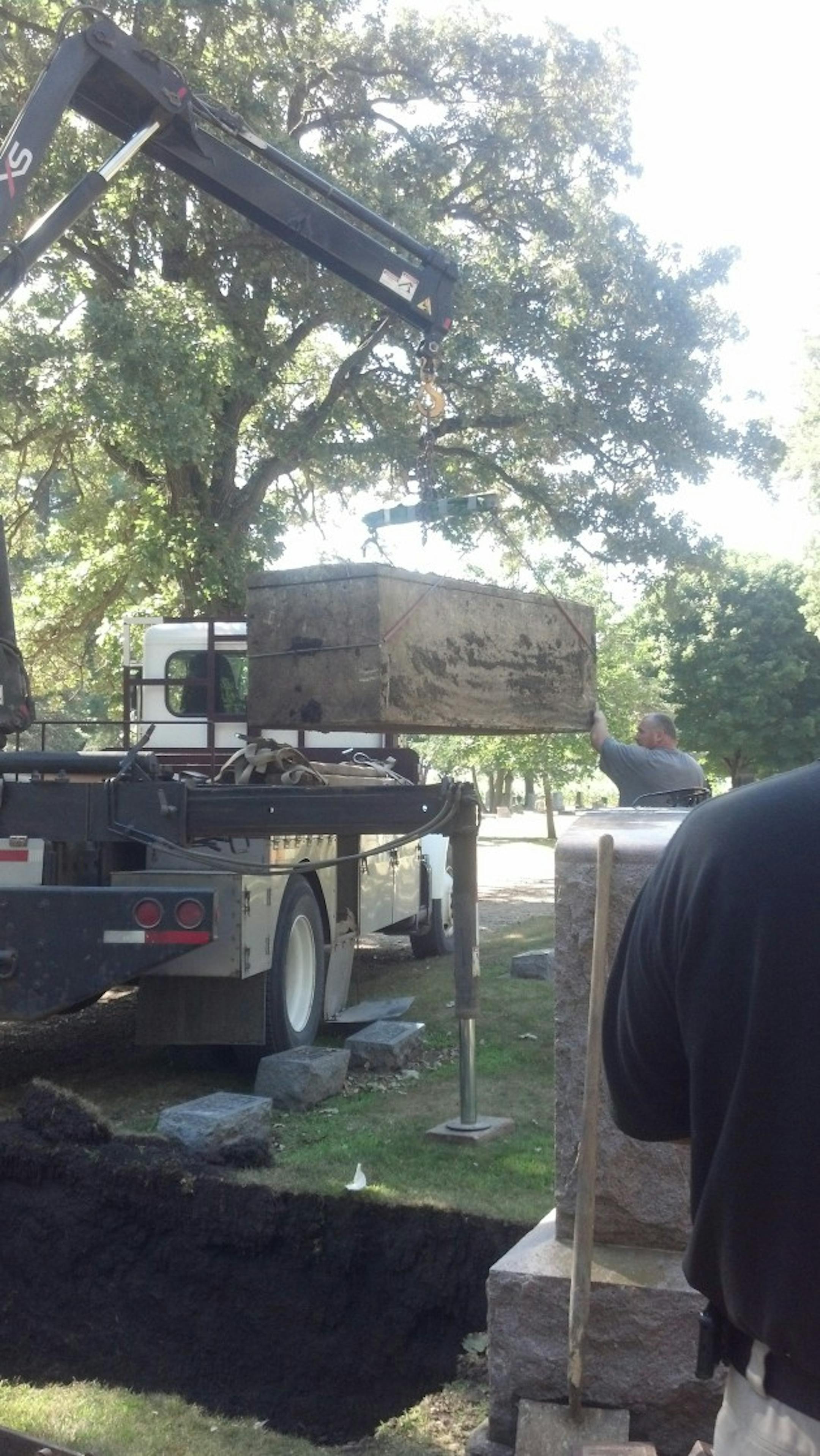 On Aug. 14, Anderson watched while the concrete vault containing the woman's remains was lifted out of the ground (photo above). Local and state investigators hope to use improved DNA analysis and other technology to try to identify her, and they credit Anderson for pushing them to take this step. "I still can't believe it happened," Anderson said. "I've wanted it for so long." Now comes the next wait, as the remains are shipped from laboratory to laboratory before the reinterment in a grave that, Anderson hopes, will someday no longer be marked "unidentified."