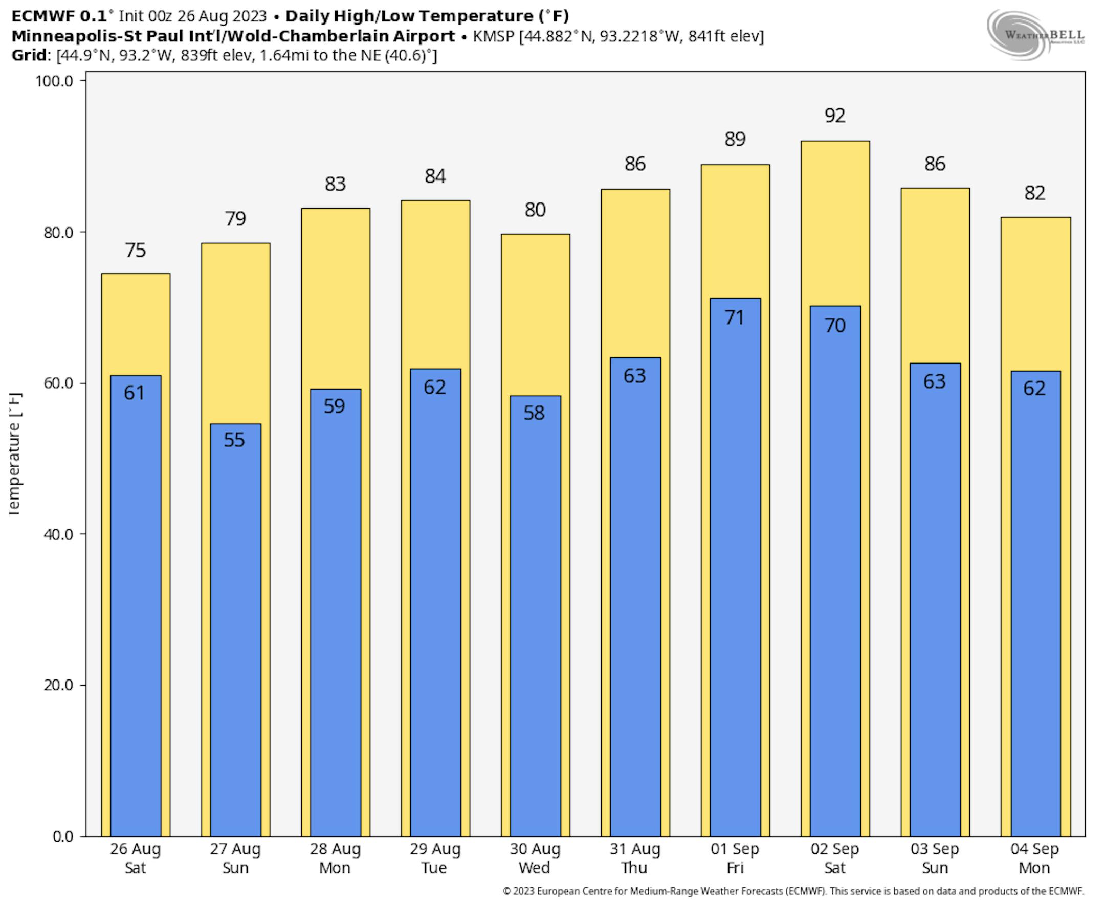 "It's time once again for the "Great Minnesota Get Together." Weather plays quite a role in the State Fair experience. Who doesn't remember braving the heat with the crowds on one of the busier intersections on a sweltering afternoon? A quick rain burst will send people scurrying for cover, and folks savor balmy days in the 70s with just a bit of a breeze. Below are some State Fair weather facts and notable weather events that have happened in past Minnesota State Fairs. Quick History of the Minnesota State Fair The Minnesota State Fair has been held at its current site since 1885. Before that it was held at a variety of locations including Fort Snelling. There were some years when the Fair was not held because of war, disease, or for logistical reasons. These years are: 1861 (Civil War), 1862 (Civil and Indian War), 1893 (Columbian Exposition), 1945 (fuel shortage because of WWII), and 1946 (outbreak of Polio.) In 2020 the fair was not held due to COVID 19. Beginning in 1975, the fair has a 12-day run each year ending with Labor Day. Thus since 1975, the Fair begins on a Thursday in August. Before 1975, the Fair was held for shorter durations (eleven days from 1972 to 1974, ten days from 1939 to 1971, eight days from 1919 to 1938 and six days from 1885 to 1918). The 2023 Minnesota State Fair runs from August 24-Sepember 4."
