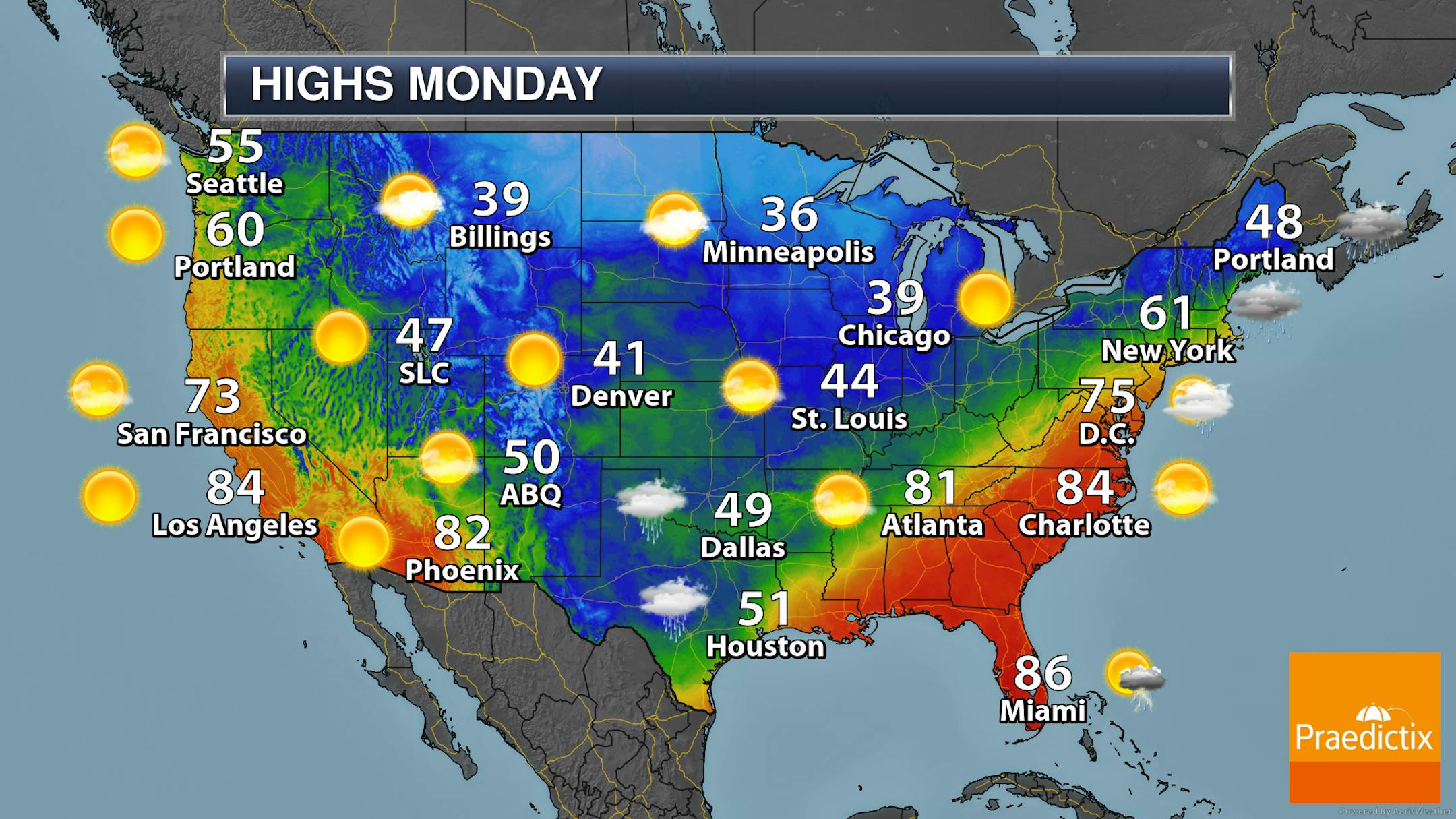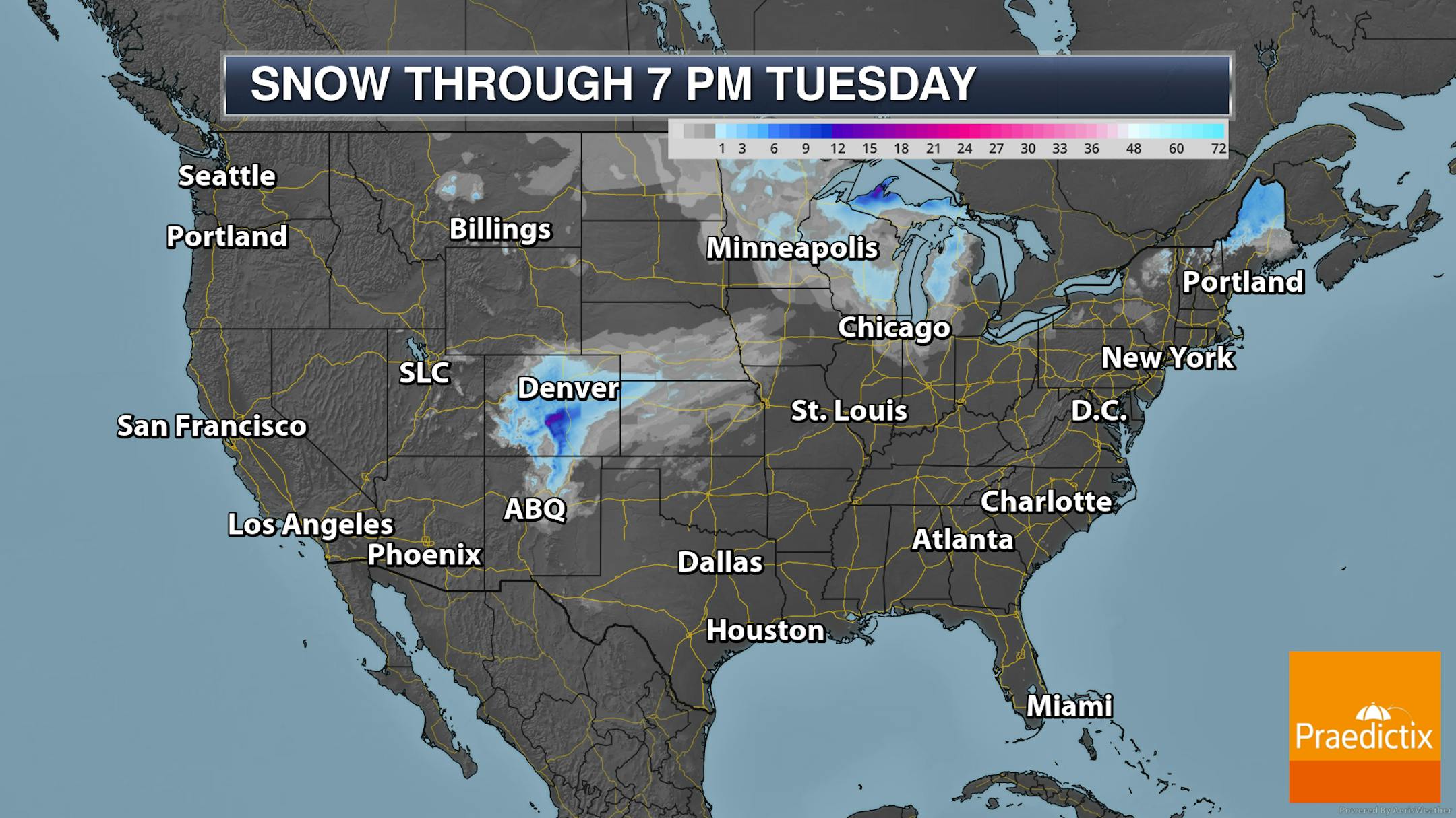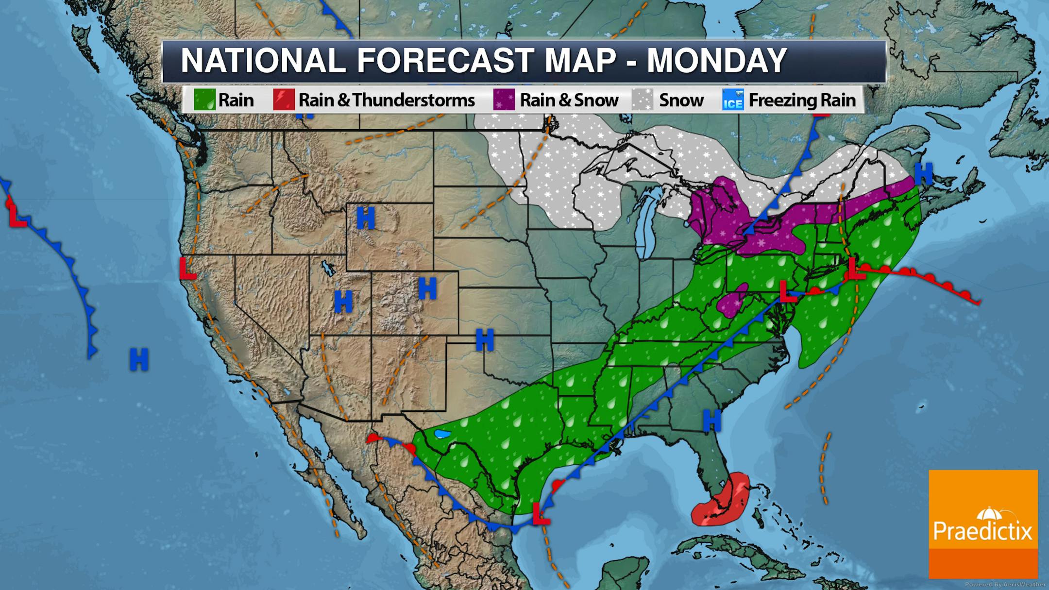 Forecast loop from 7 AM Monday to 1 PM Tuesday.