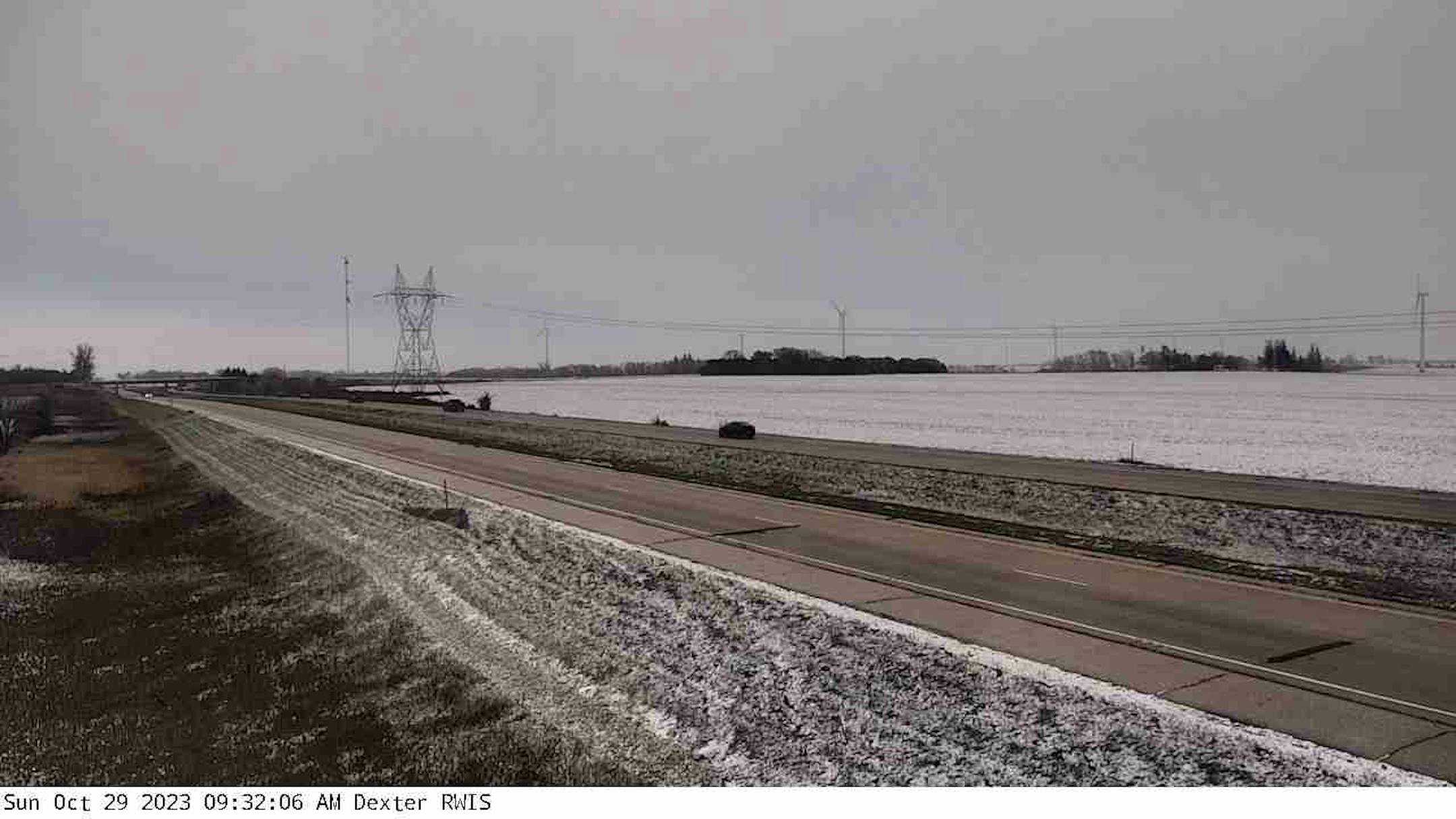 This was the scene in Dexter, MN, Sunday morning, showing the first accumulating snow of the season on grassy surface across portions of southern Minnesota.
