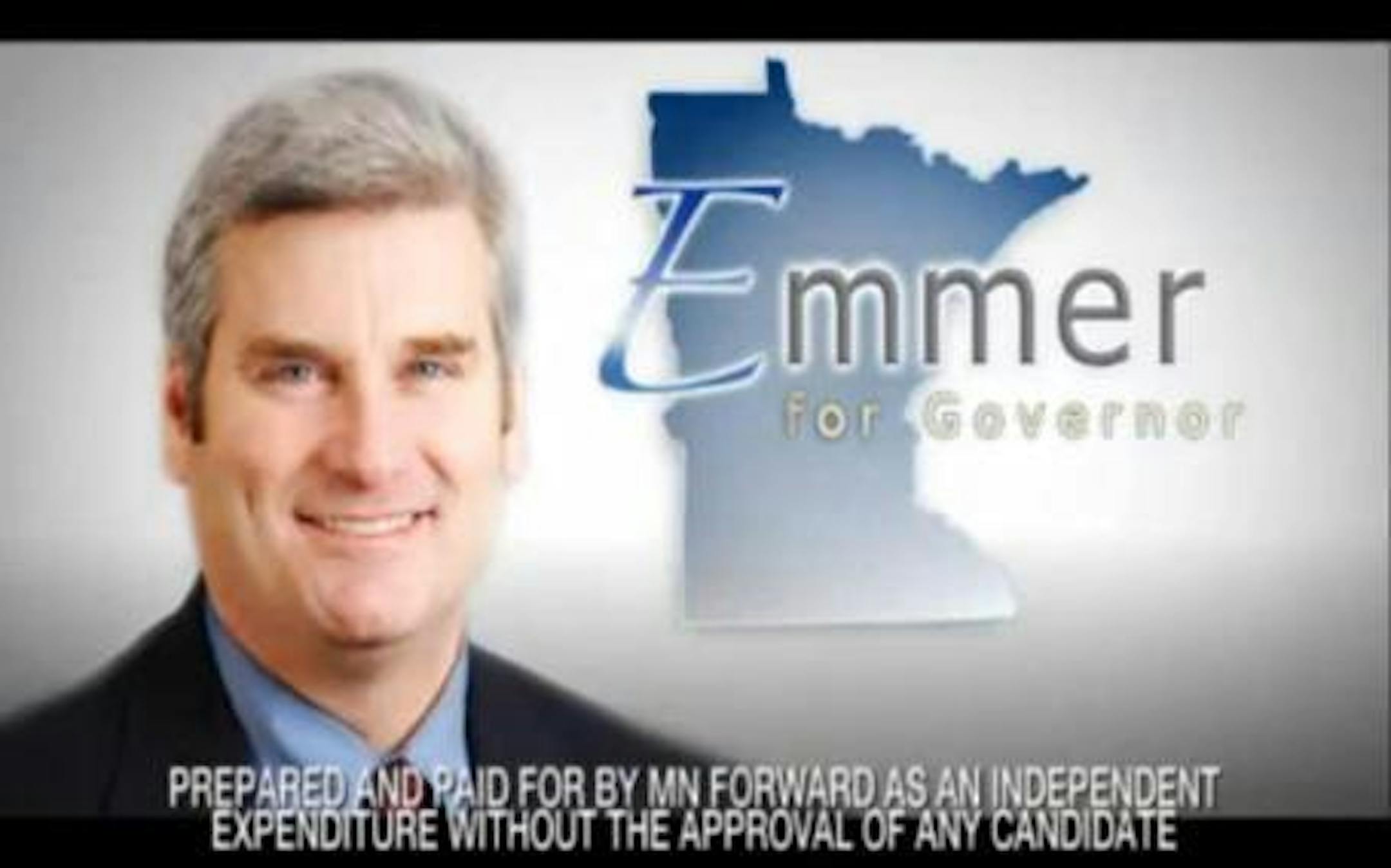 Emmer's face as it appears on a screen grab of a YouTube version of the ad; Emmer's face from the legislative Web site: