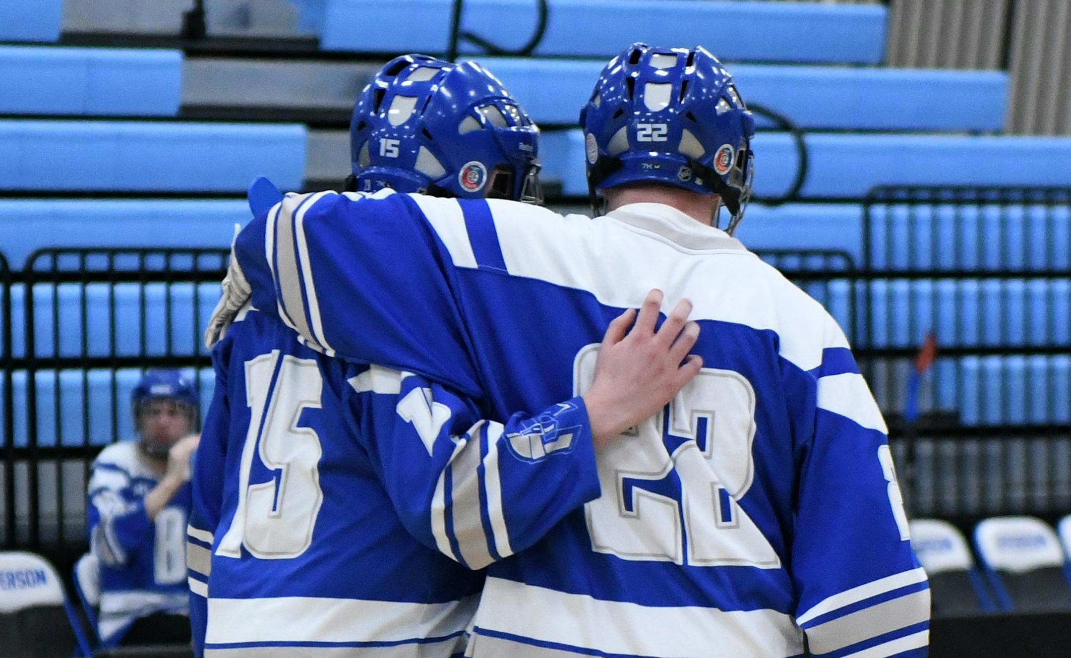 Burnsville/Farmington/Lakeville senior defenseman Caden Roseth (left) led all scorers with nine goals and one assist. Senior forward Clarke Ruhland added three goals for the Blazing Cats. Burnsville/Farmington/Lakeville made it a weekend of high scoring. The Blazing Cats scored 15 goals Friday against Mankato, when Ruhland scored five goals and senior Riley Deutsch four.
