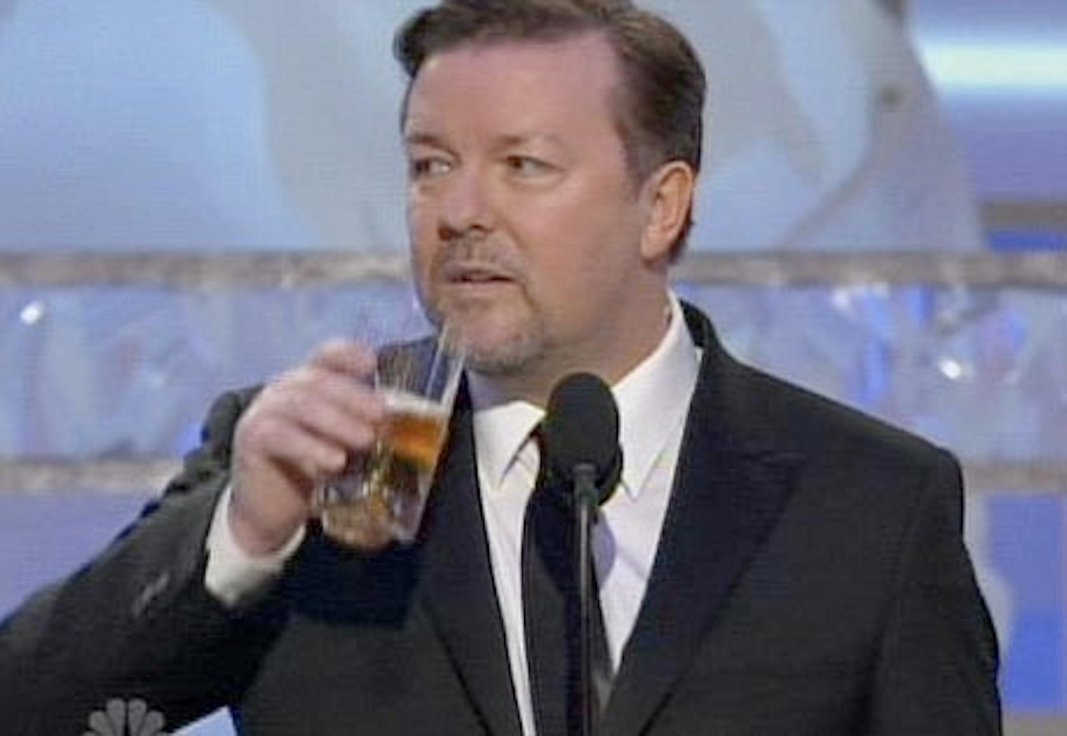 Kind? Many words you can use to describe Gervais, but very kind is about as accurate as slightly chubby. Now he's all slimmed down, and good for him. He may never do anything as brilliant as "The Office," but a lot of people, your correspondent included, will watch just about anything he does. Let us be blunt: many comics are not exactly edumacated people, and Gervais is a sharp enough fellow. But aside from the crack about helping someone off the john and putting his teeth back in, nothing about the cracks seemed particularly clever or witty. The shock value came from hearing someone say things about famous people that just isn't said in the usual self-congradulatory tongue-bath of an awards show. Like this: