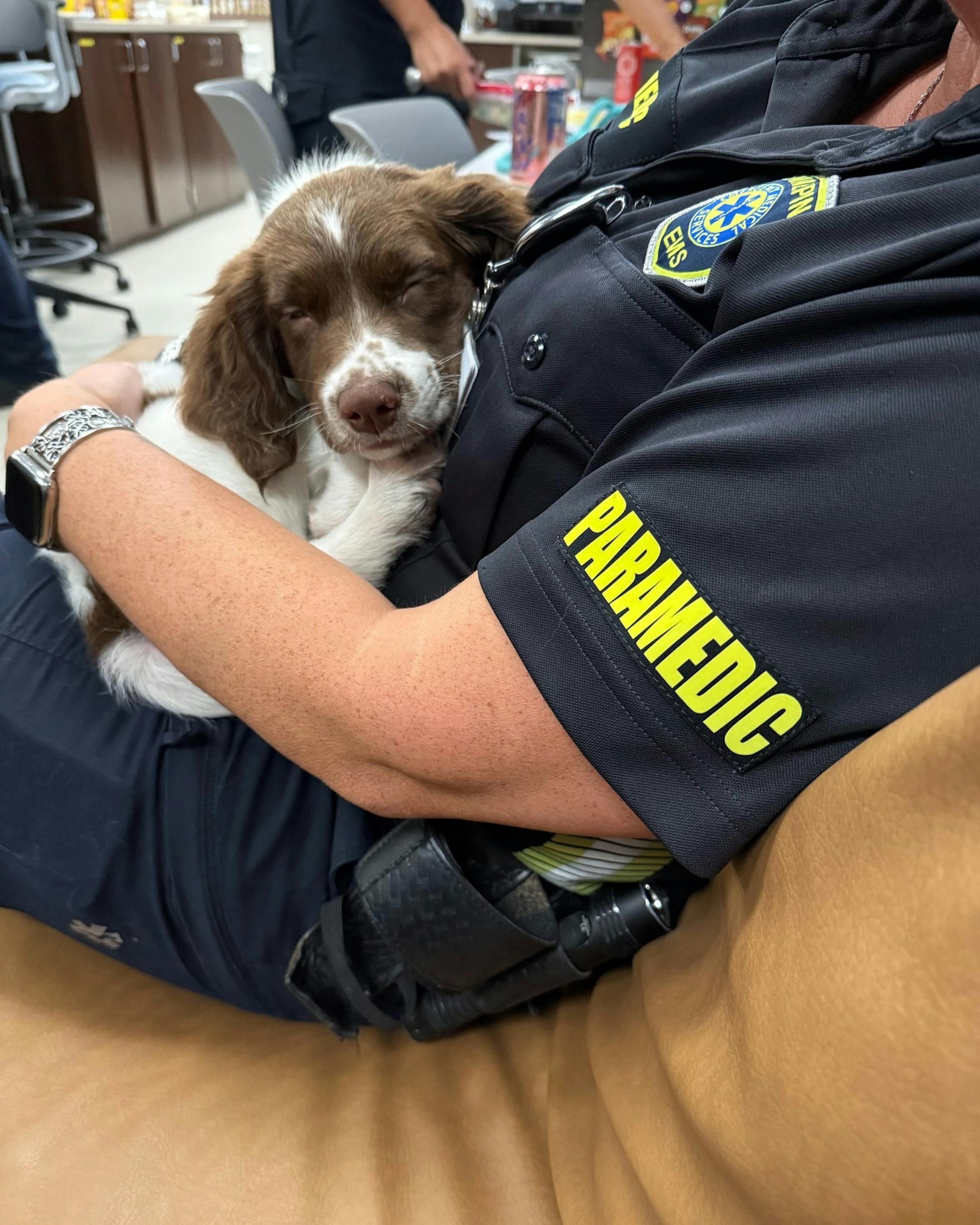 “He’s here to bring joy to some really tough days and to bring a little bit of comfort to our staff,” said Rigsby’s handler, Mary Welch, deputy chief of staff at the Hennepin Emergency Medical Services campus.