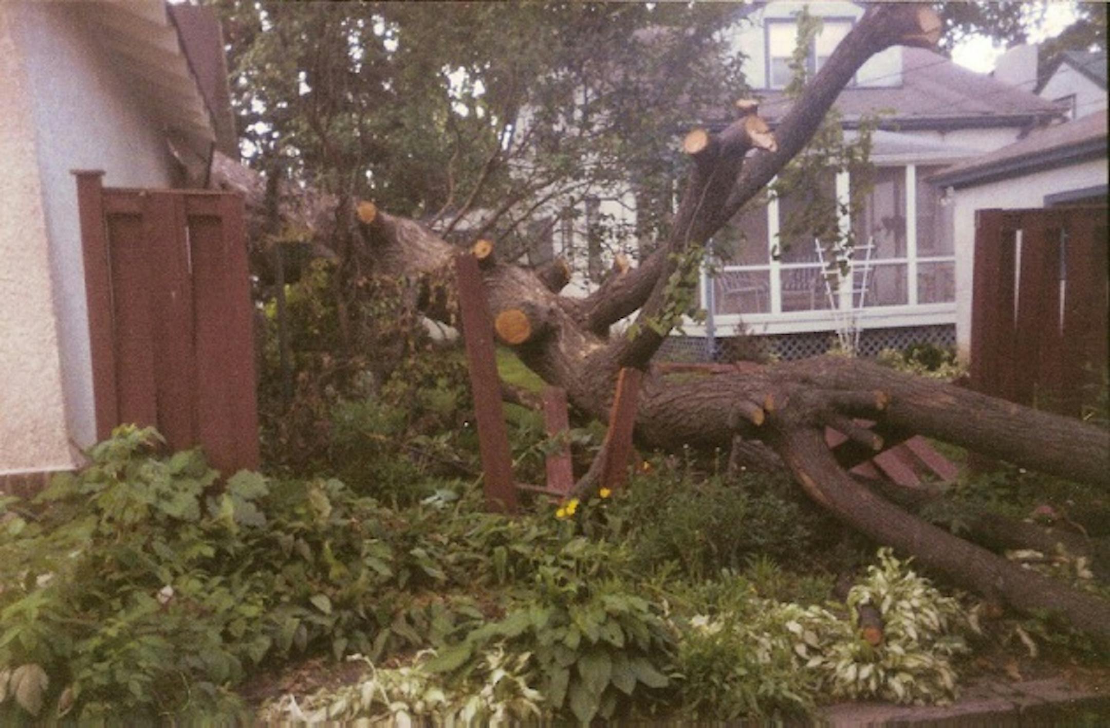 Massive trees toppled by the roots blocked motorists' paths, smashed cars and wedged precariously over houses. Prolonged power outages and massive downpours made recovery that much worse. For us, that was 1998, when this picture was taken, and the recent double-whammy of storms seemed all too familiar when we woke up Saturday and tried to navigate through South Minneapolis, supremely grateful that this time it wasn't us dealing with cleanup, and feeling great empathy for residents walking the streets to take in the transformed landscape, bearing the dazed look we knew quite well.