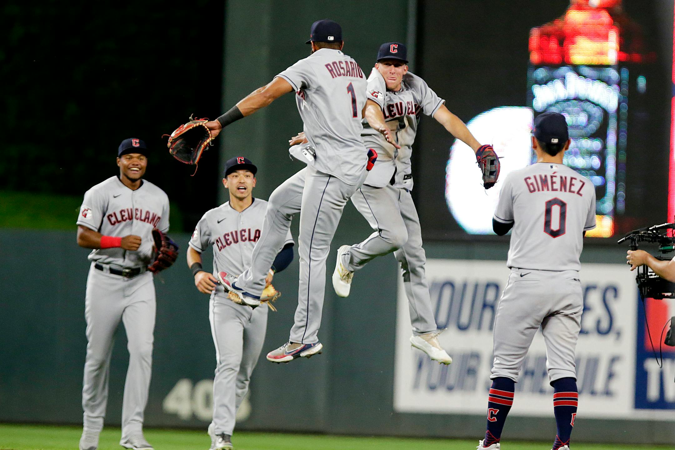 Cleveland has won the first two games of the series in late-inning fashion to overtake the Twins for first place in the American League Central Division.